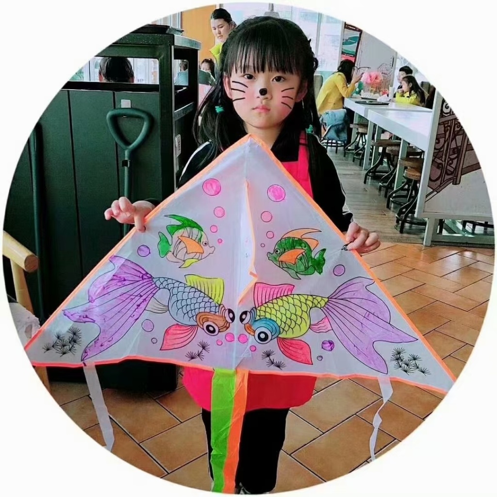 DIY涂鸦教学风筝。1⃣️:涂鸦风筝一套包含:风筝+6色涂料+画笔一支+30米线板。2⃣️:卡通风筝带30米线板,3⃣️:都是平纹布的材料,4⃣️:尺寸为:70X70X100厘米。涂鸦教学风筝跟卡通风筝