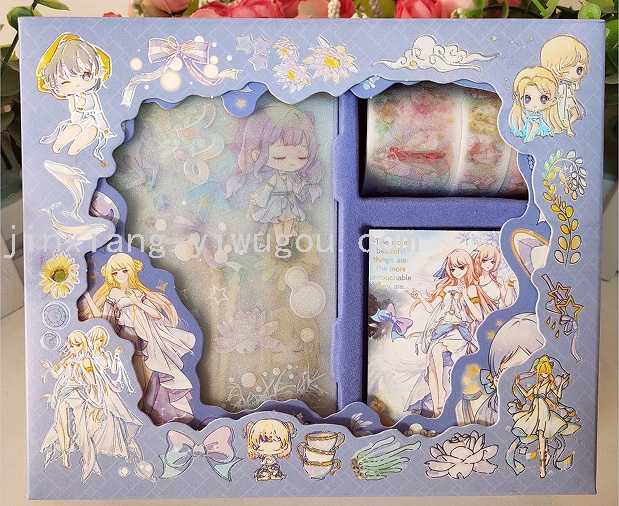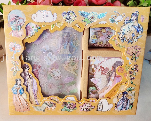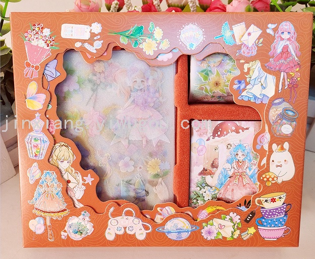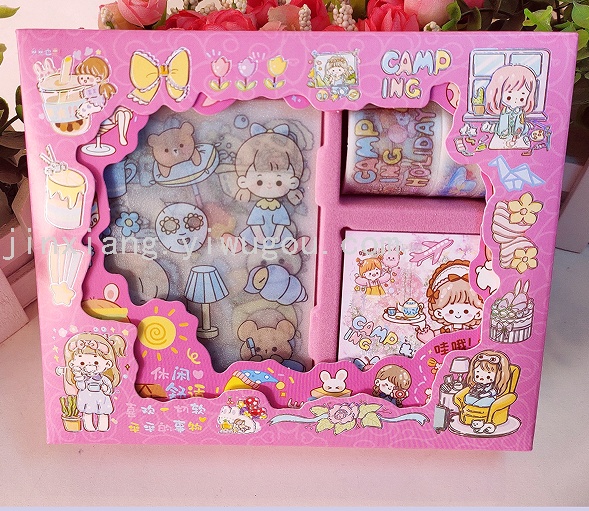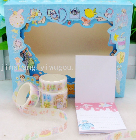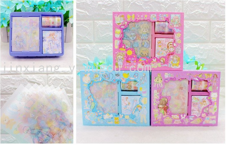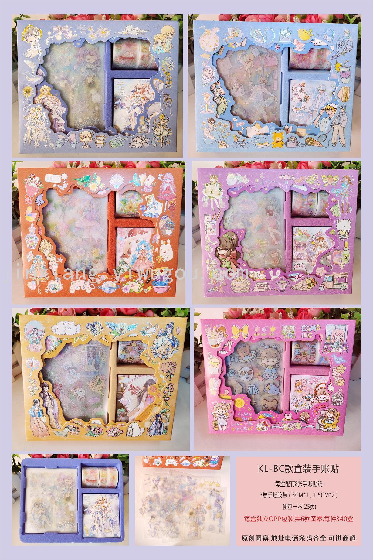 新款KL-BC款,每盒配有8张手账贴纸,3卷手账胶带(3CM*1卷,1.5CM*2卷),每盒独立OPP包装,共6款图案,每件340盒。