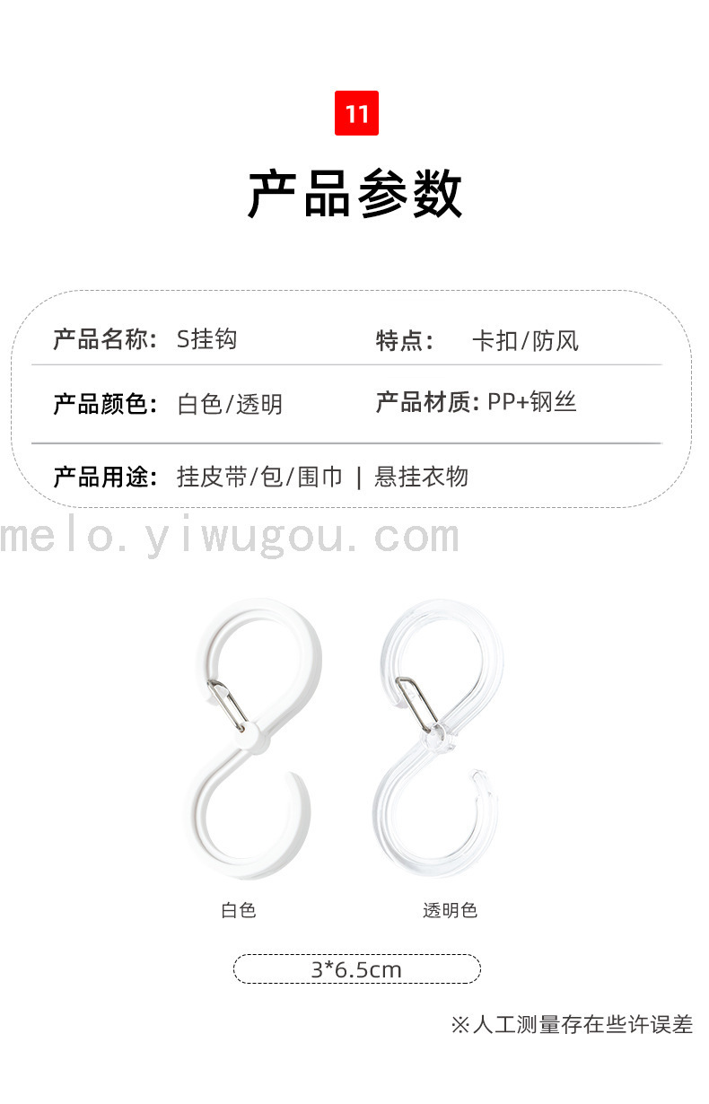 家用S型挂钩,防掉锁扣挂钩,厨具钩浴室横杆挂钩 8只装 English | 投诉
