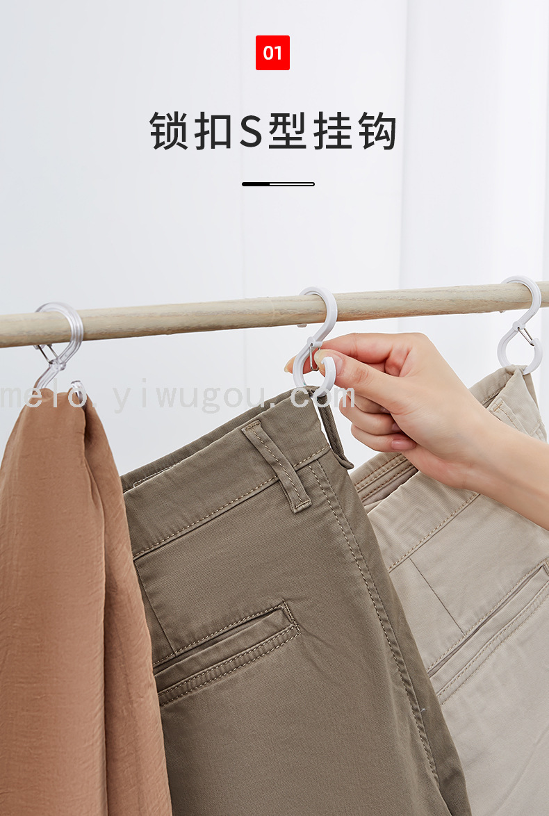 家用S型挂钩,防掉锁扣挂钩,厨具钩浴室横杆挂钩 8只装