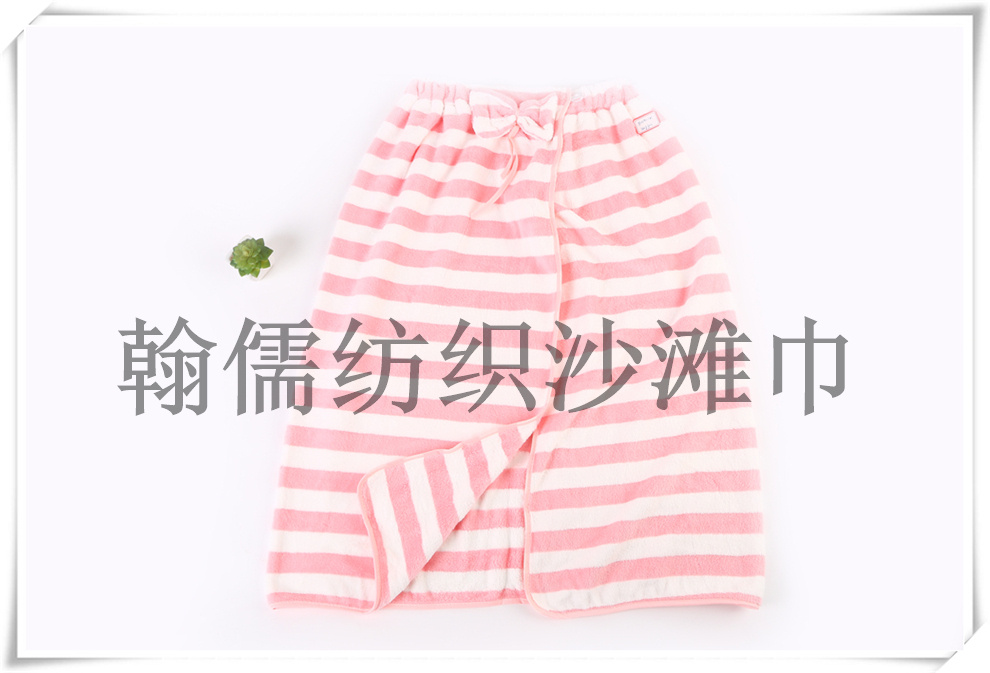 商品名称:双色条纹浴裙女 可穿可裹浴裙裹巾 家用洗澡蝴蝶结抹胸式浴裙浴巾