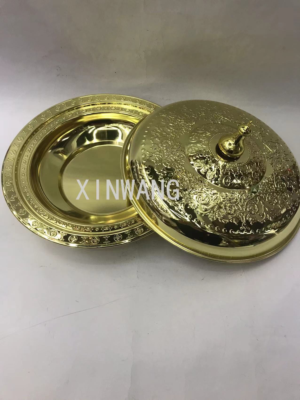 热销不锈钢中东果盘高雅花盆镀金古铜水果盘花盆加盖盘30-38CM
