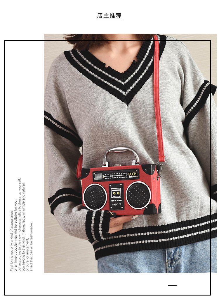 外贸新款欧美时尚创意搞怪个性女潮仿真收音机录音机音响包包 投诉