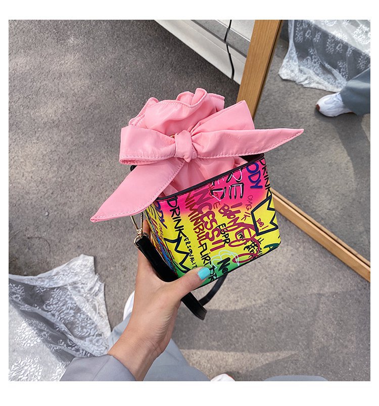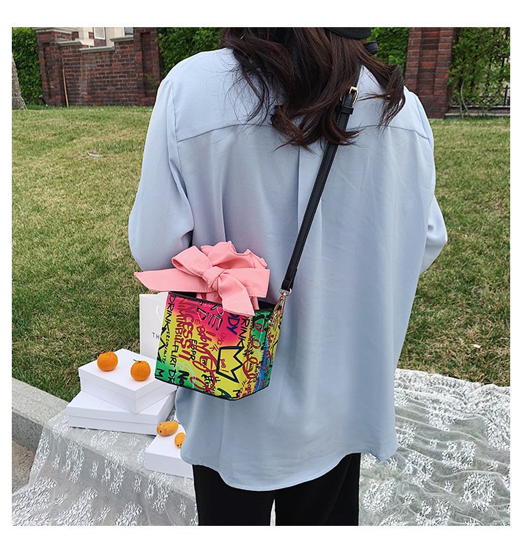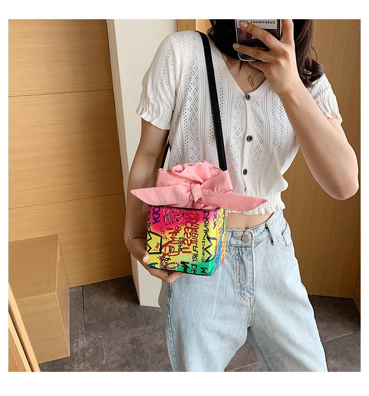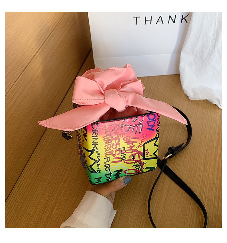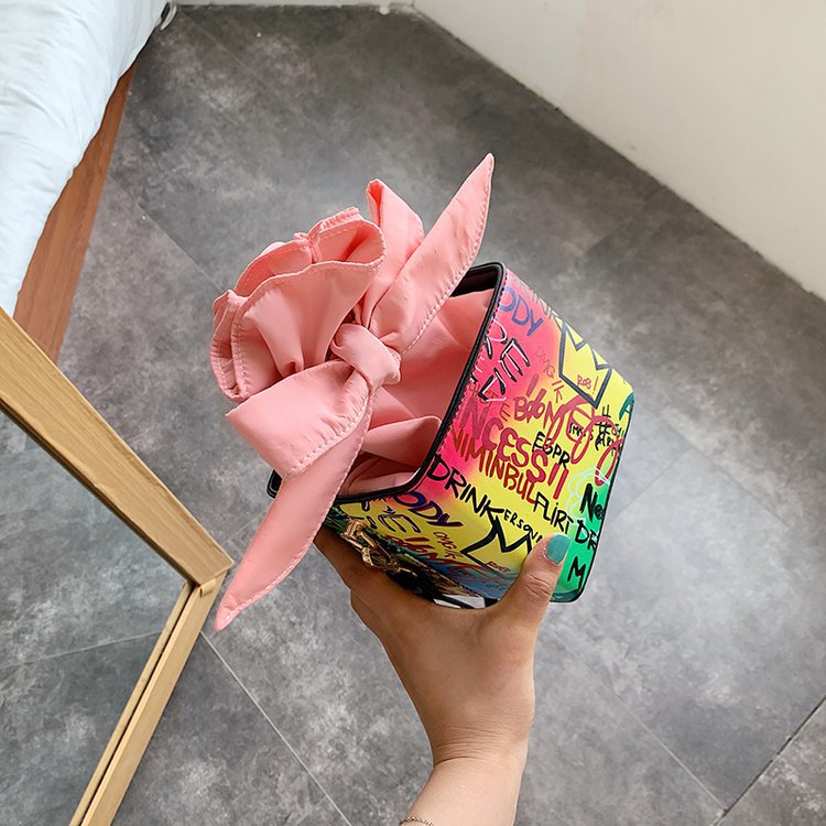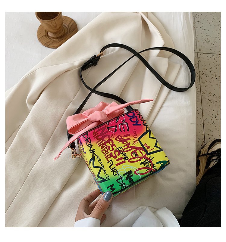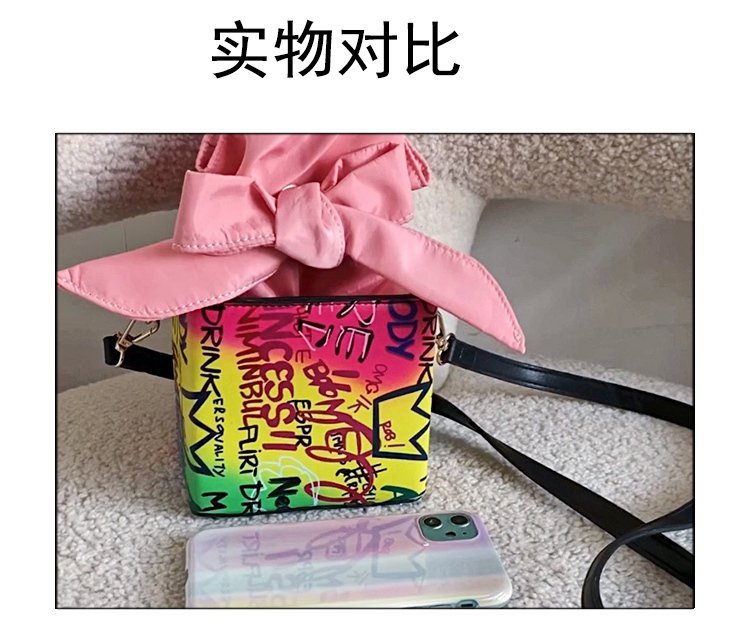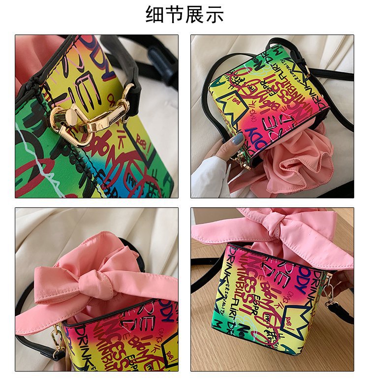 外贸新款欧美时尚潮流个性创意喷绘涂鸦撞色字母女士pu斜挎包