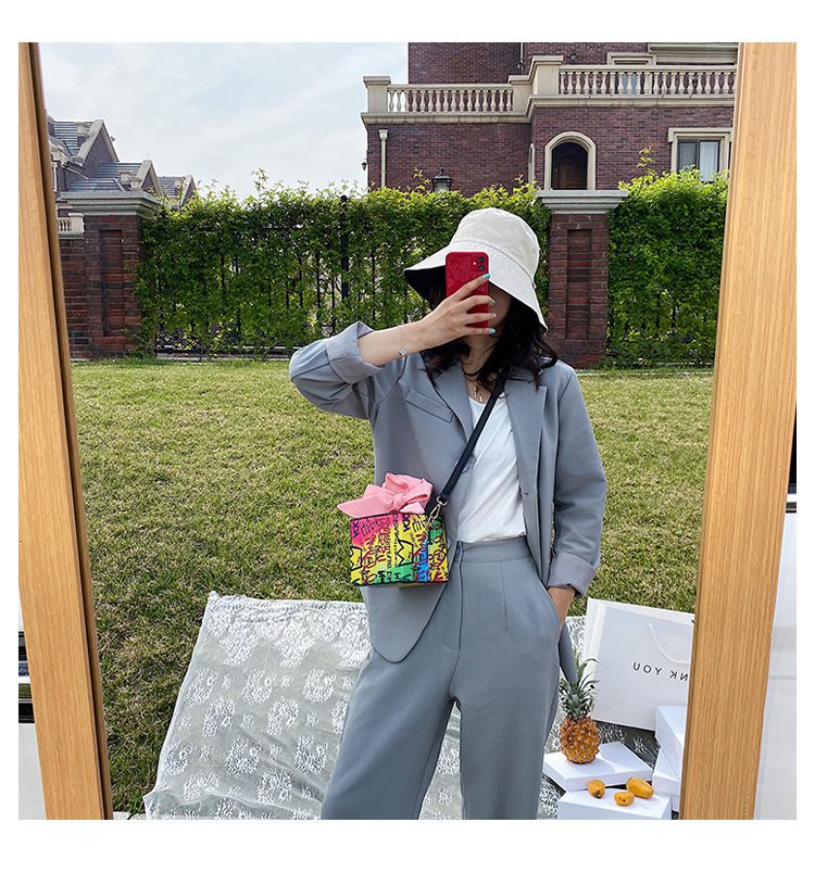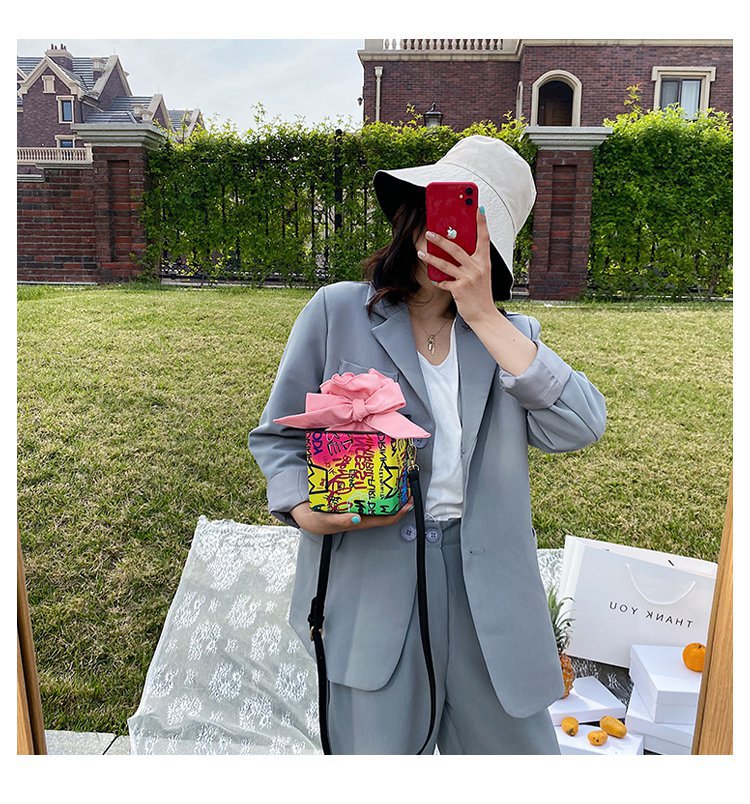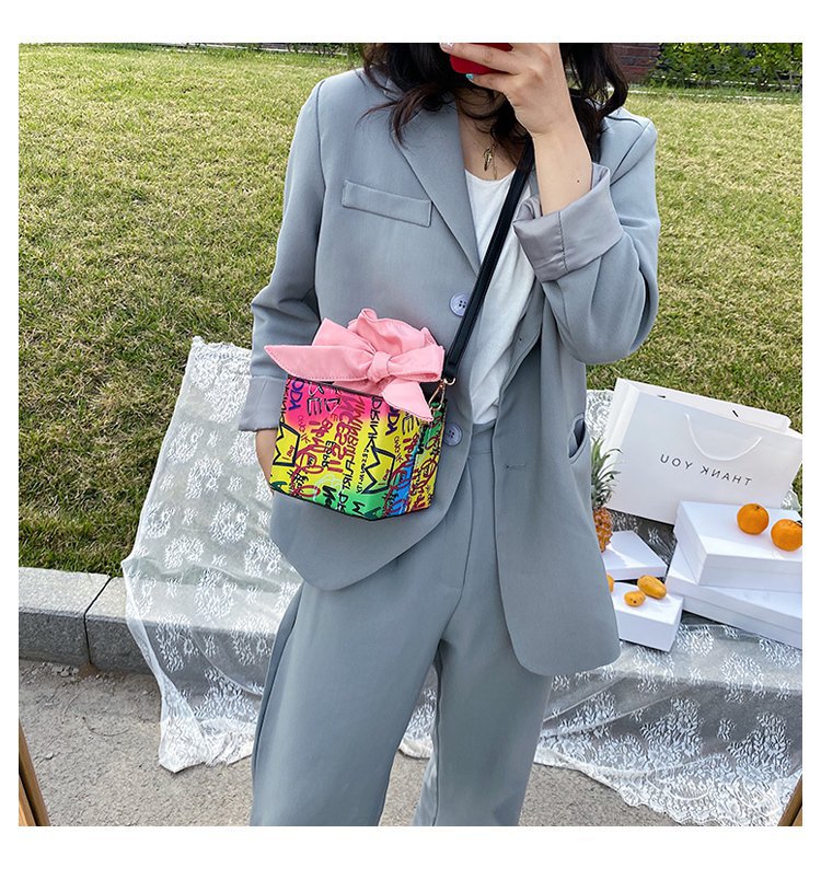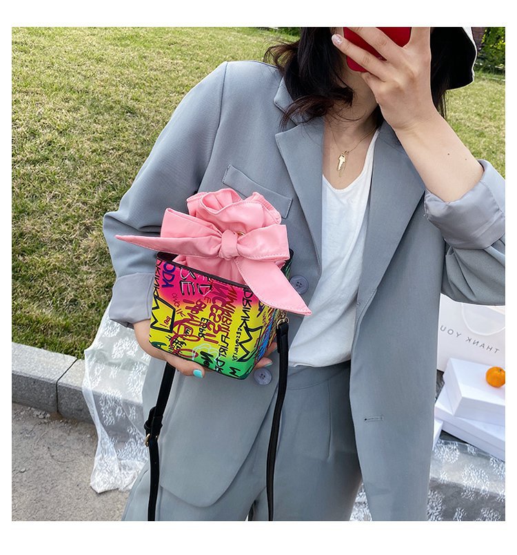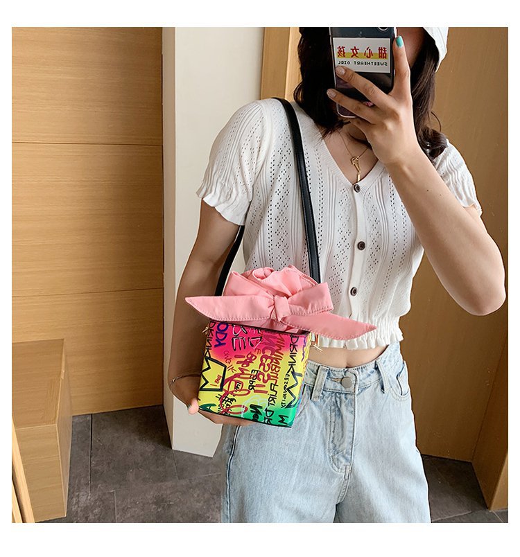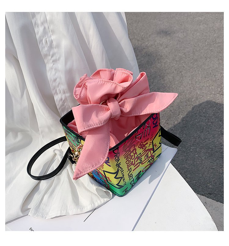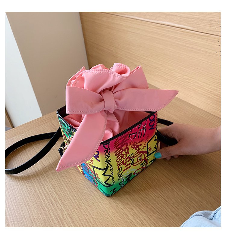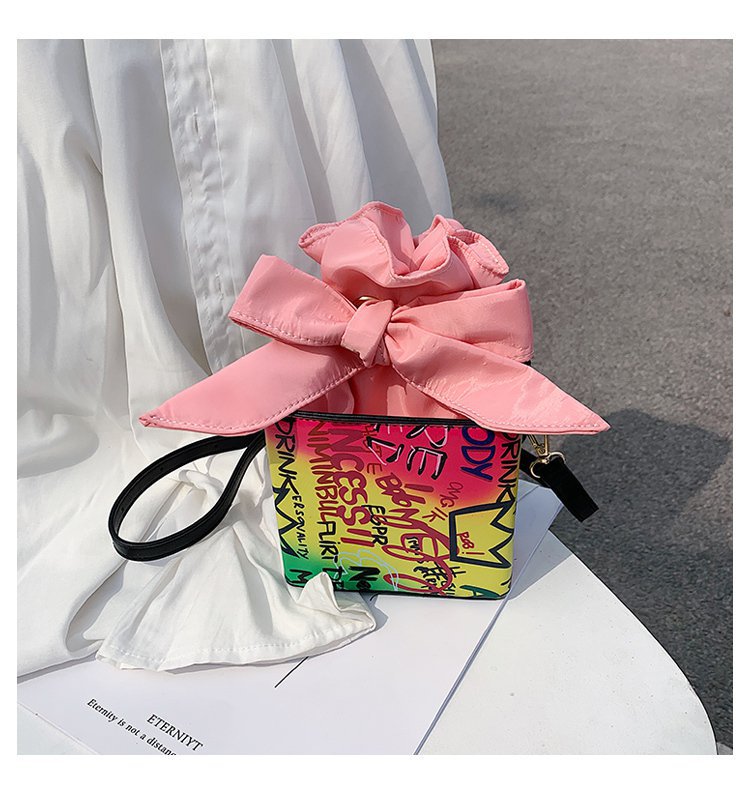 外贸新款欧美时尚潮流个性创意喷绘涂鸦撞色字母女士pu斜挎包