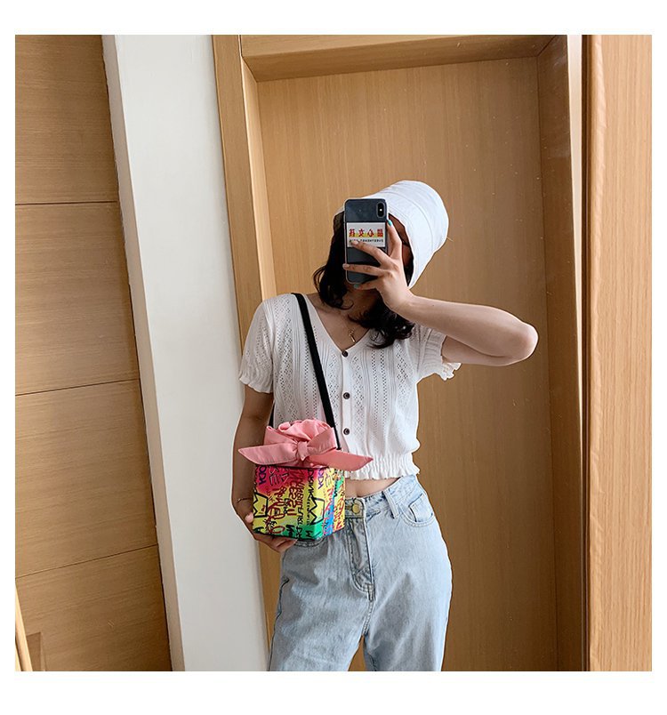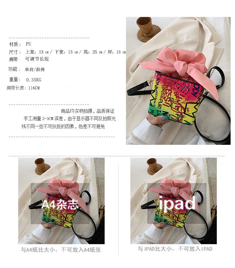 外贸新款欧美时尚潮流个性创意喷绘涂鸦撞色字母女士pu斜挎包 投诉