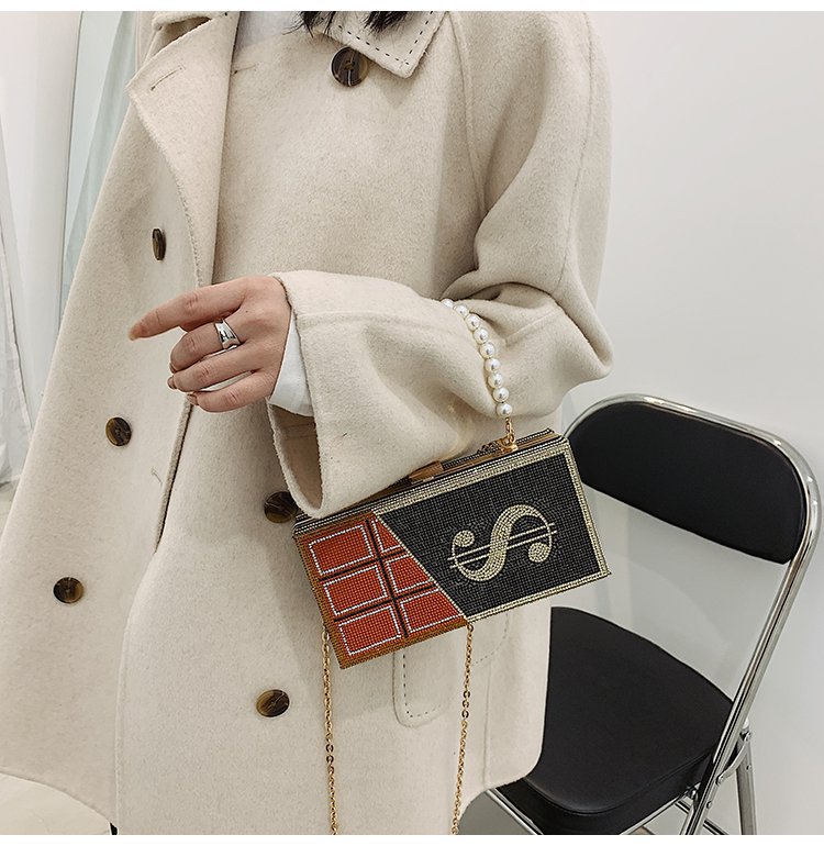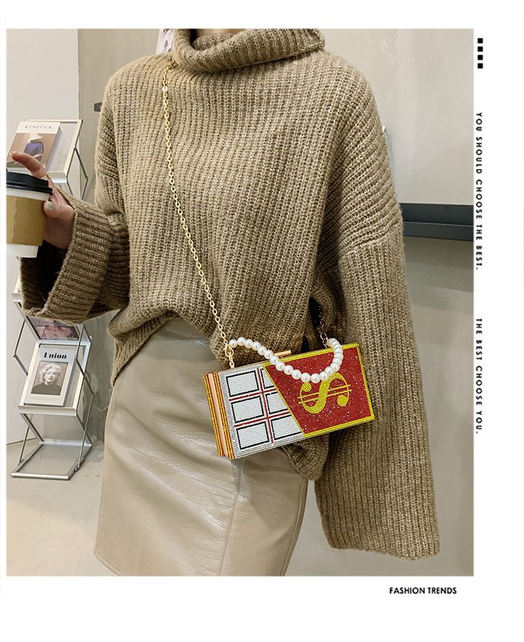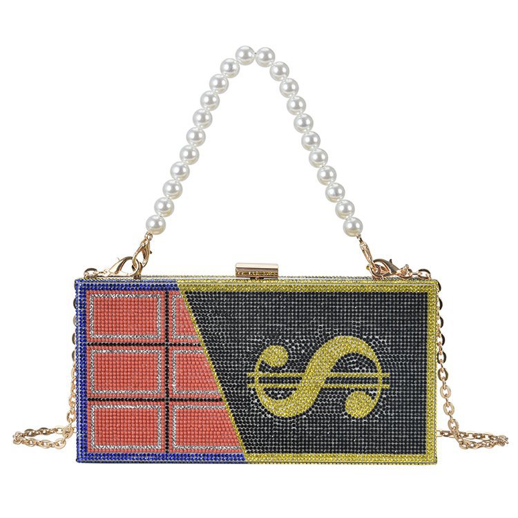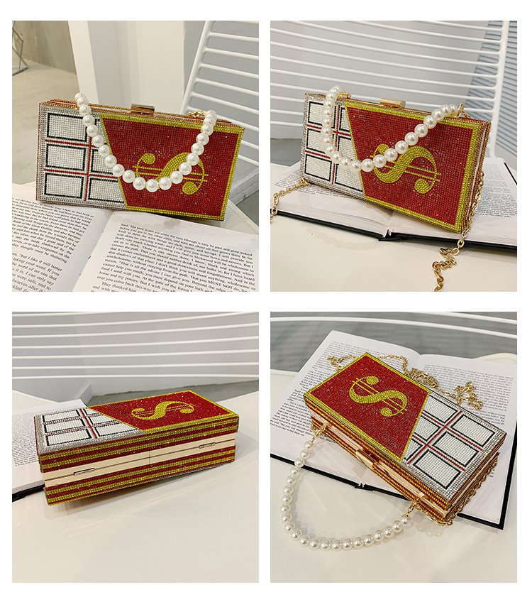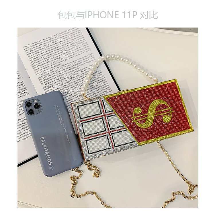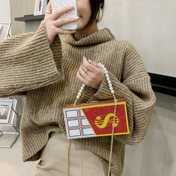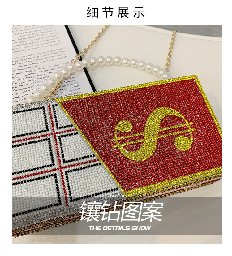 外贸新款欧美时尚创意恶搞趣味美元金钱女士手拎包闪亮镶钻斜挎包