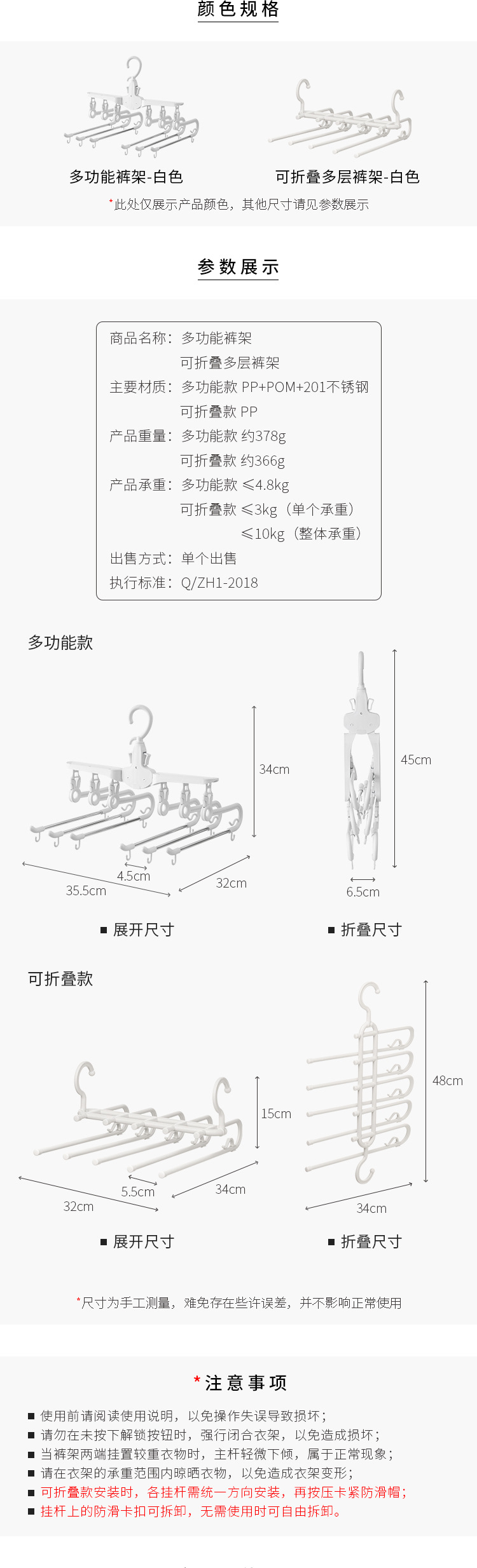 多功能裤架-白色:6个 ¥2985 1064件