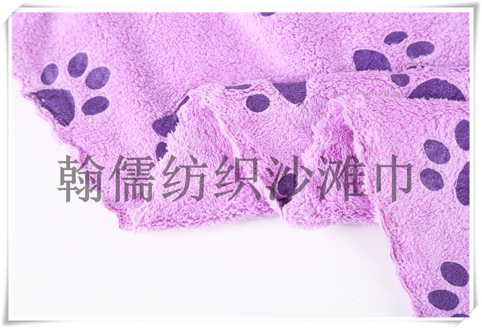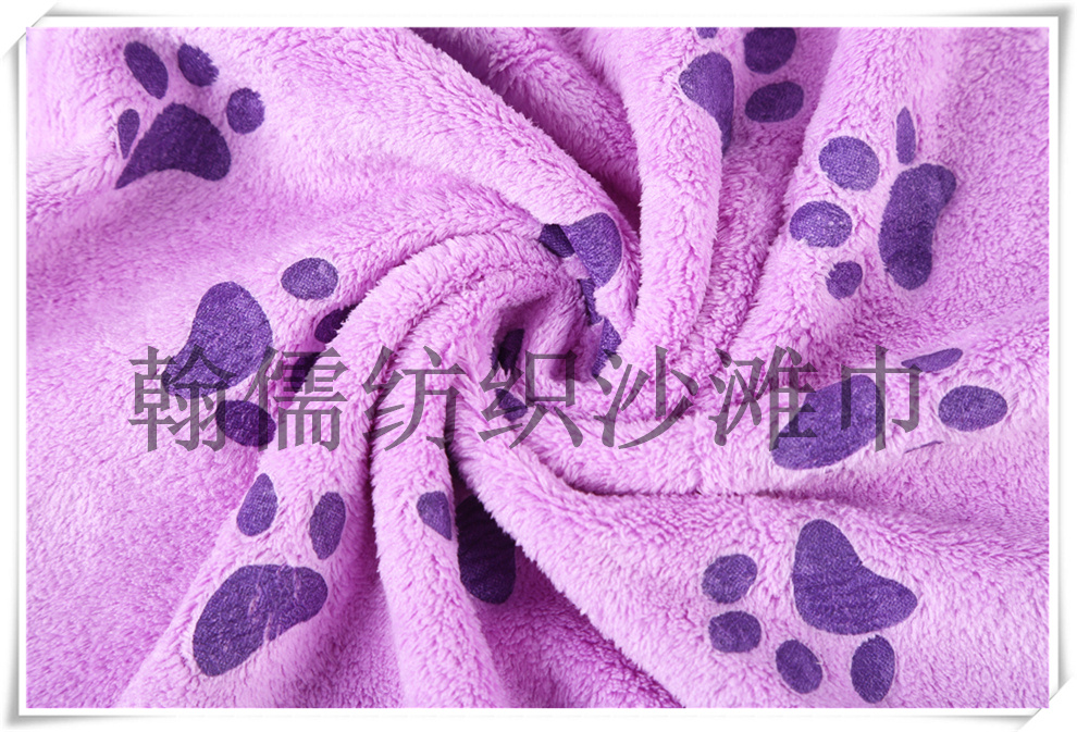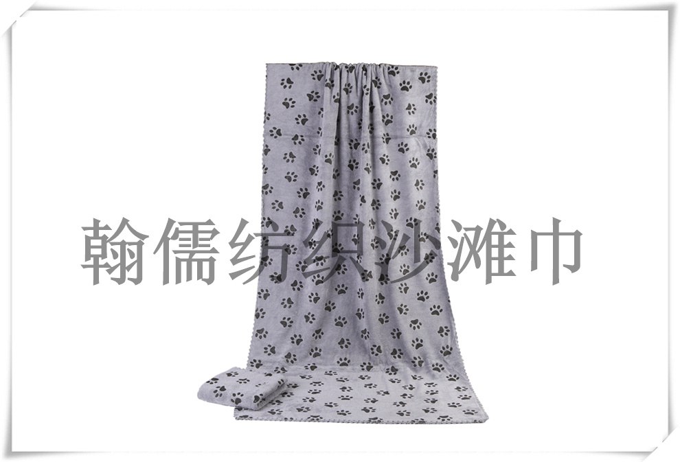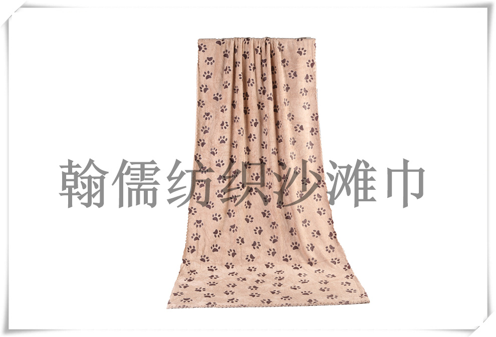 商品名称:俏皮动物脚印印花速干双面绒沙滩浴巾 吸水披风大毛巾 瑜伽垫铺巾