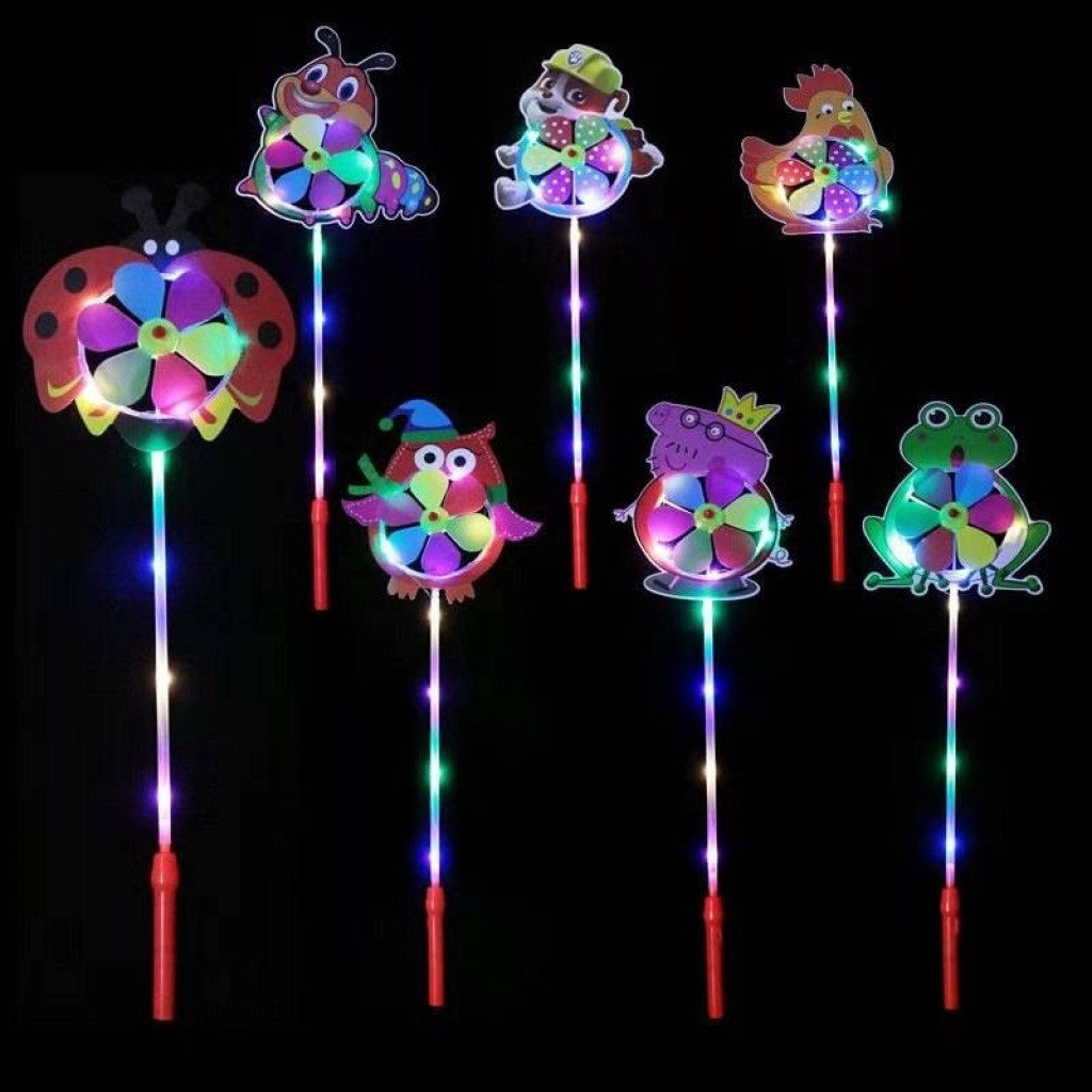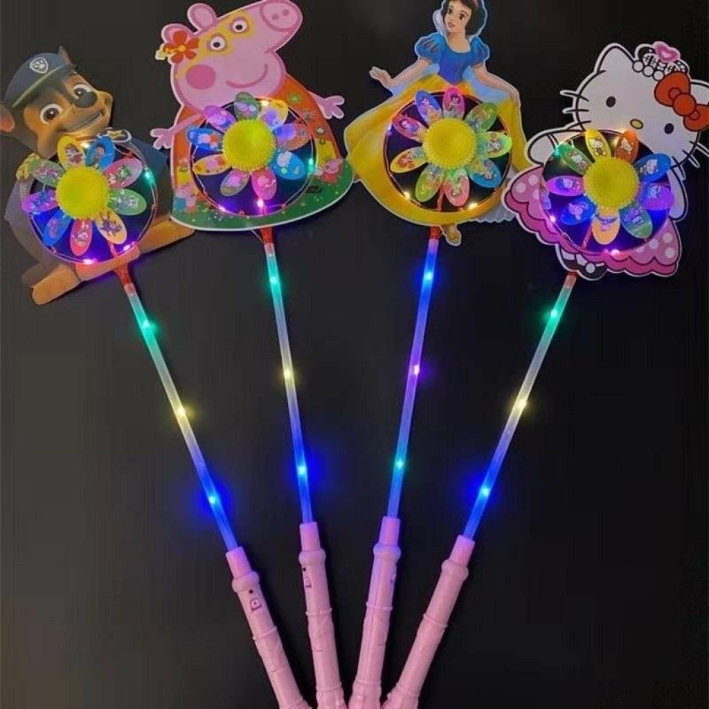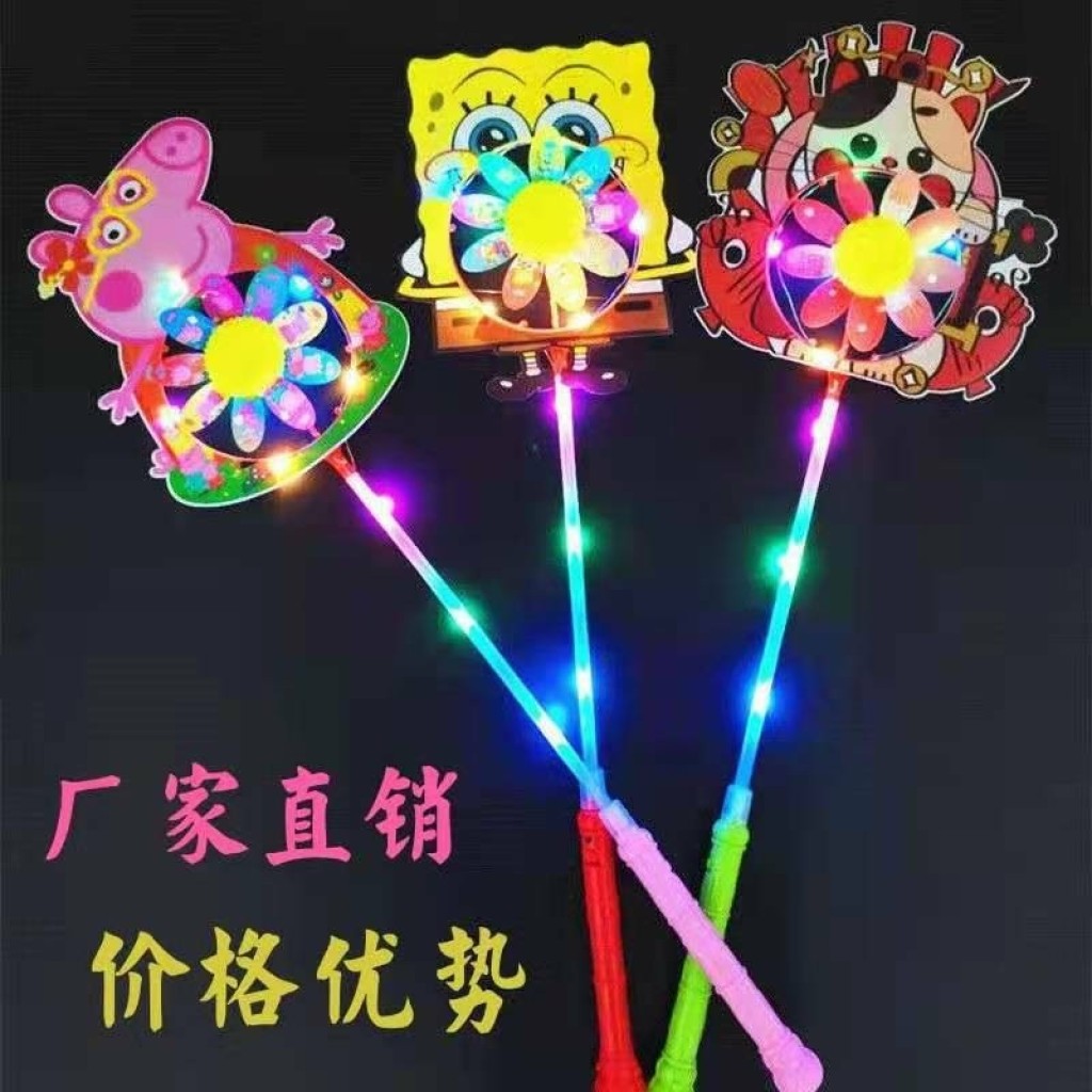 网红高亮发光卡通风车闪光动画风车儿童户外玩具地推抢手货源批发送电池 包邮