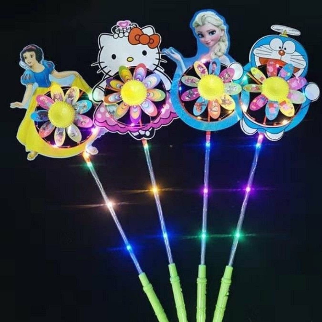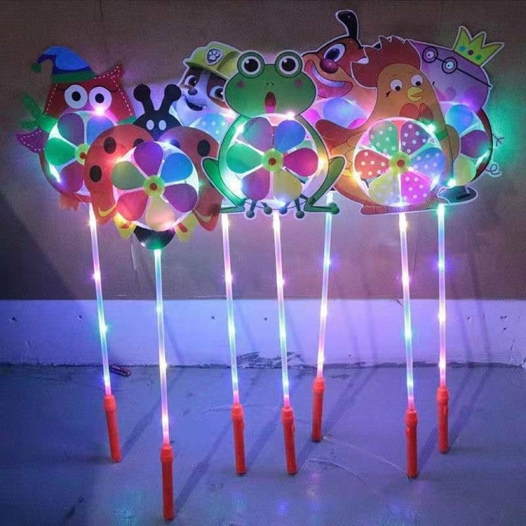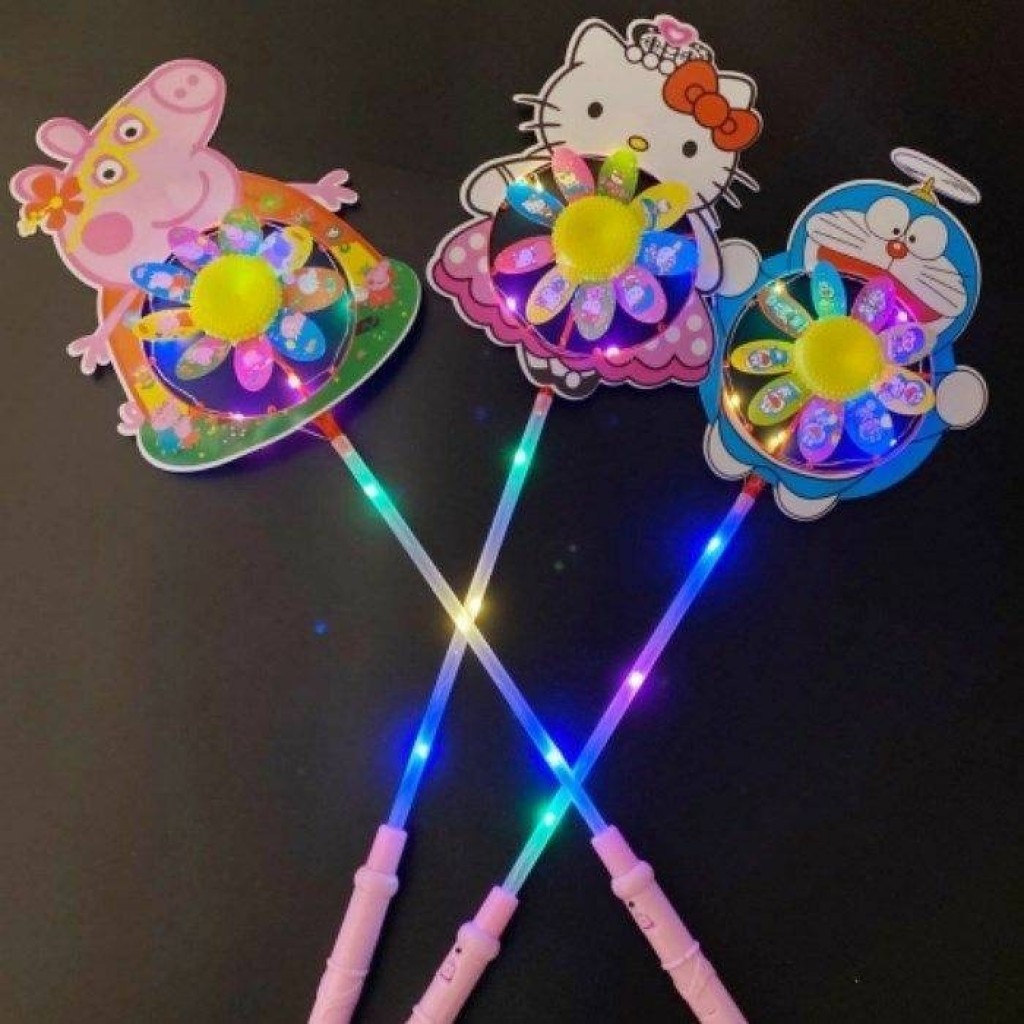网红高亮发光卡通风车闪光动画风车儿童户外玩具地推抢手货源批发送电池 包邮