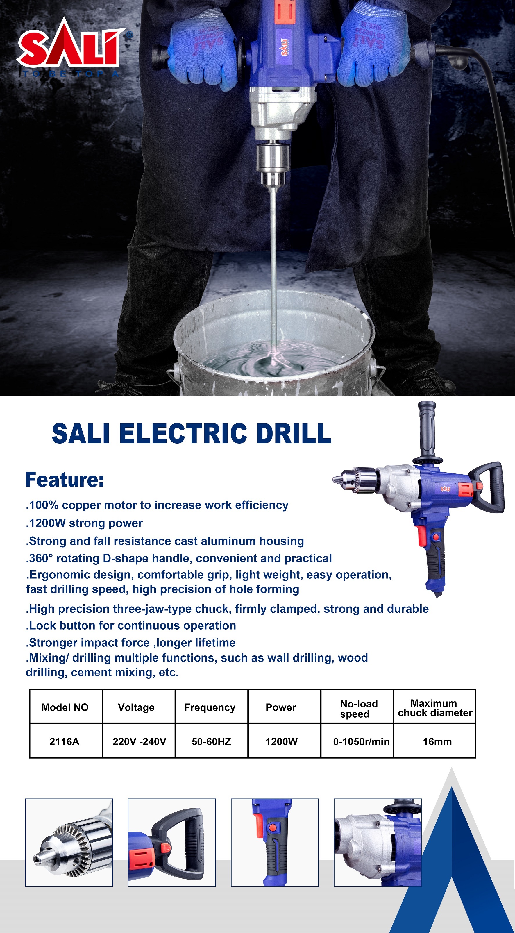 SALI电钻飞机钻 大功率腻子粉水泥搅拌机