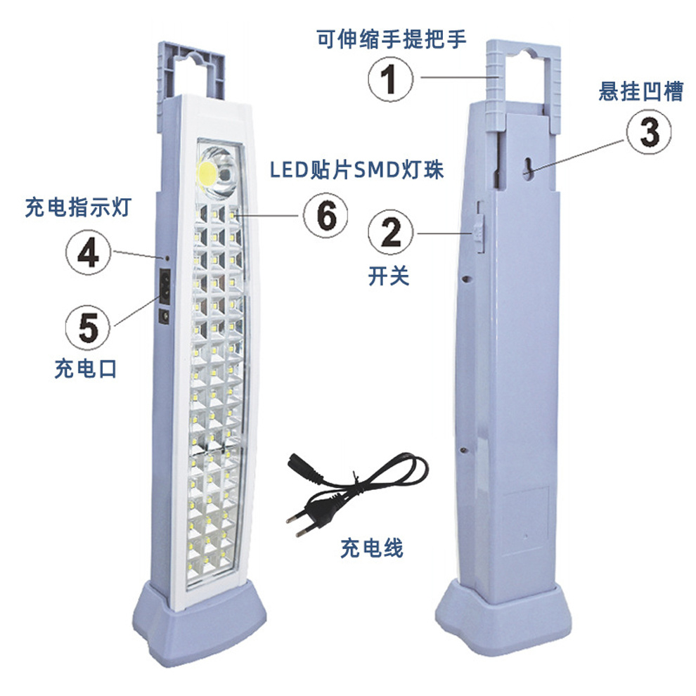 LED充电应急灯强光户外野营灯 家用停电多功能手电筒可悬挂可手提