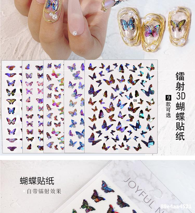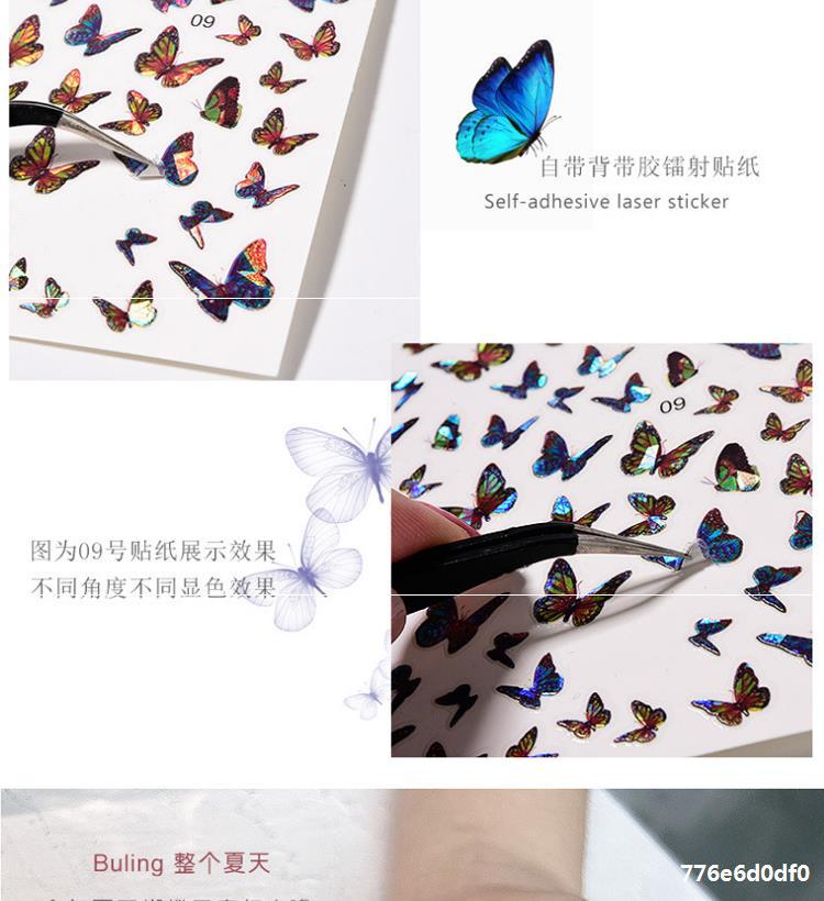网红小红书热卖新款镭射蝴蝶美甲贴纸ins风巴洛克极光3D指甲贴花专供出口 English | 投诉