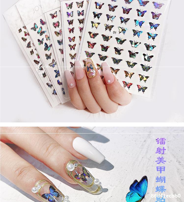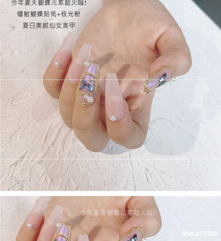网红小红书热卖新款镭射蝴蝶美甲贴纸ins风巴洛克极光3D指甲贴花