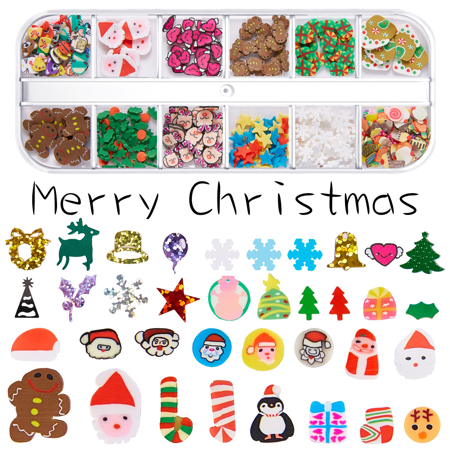 跨境圣诞节美甲亮片 彩妆雪花圣诞老人树美甲饰品指甲贴闪光粉钻专供出口 English | 投诉