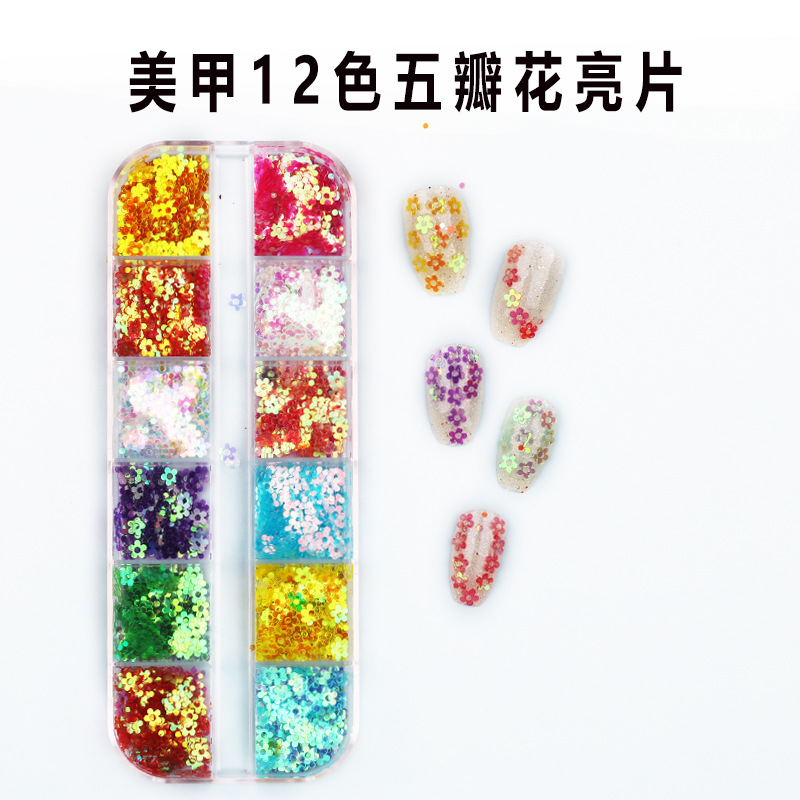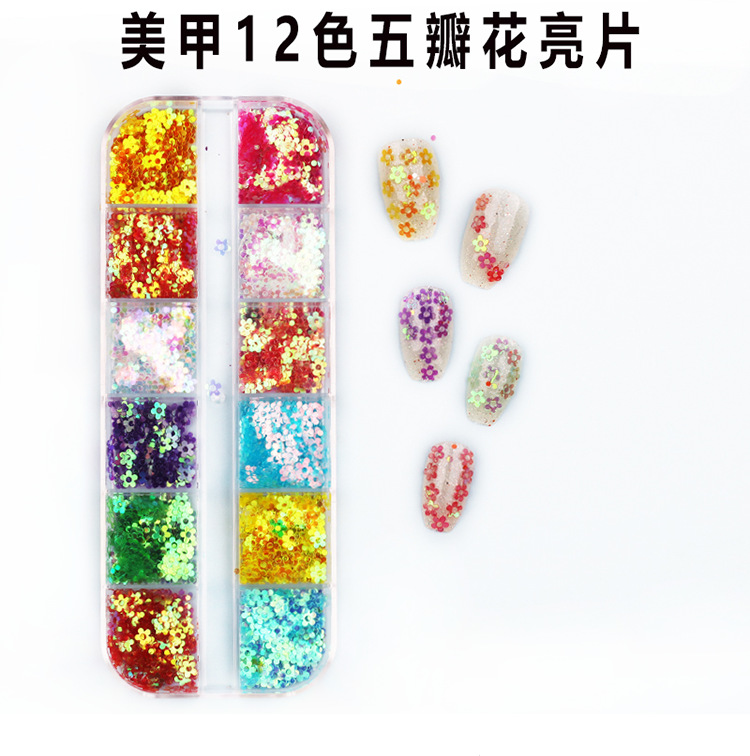 12格长条美甲镭射亮片 超薄蝴蝶圆形五角星几何亮片饰品 眼妆亮片专供出口 English | 投诉