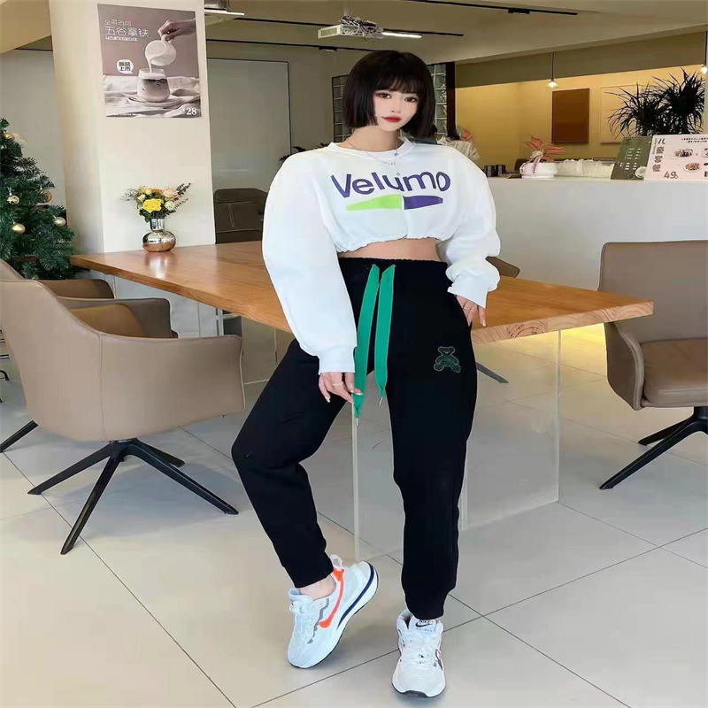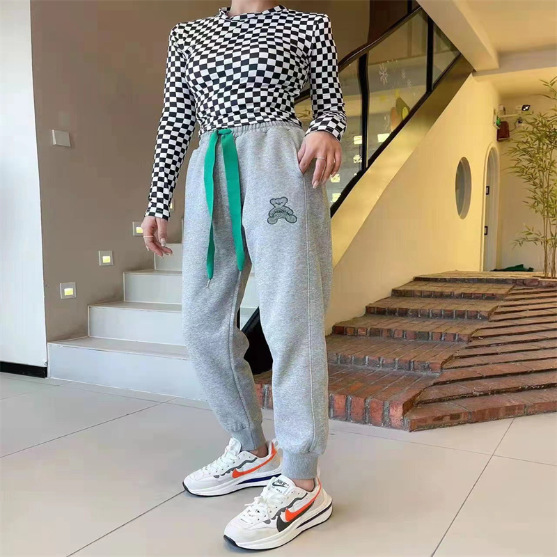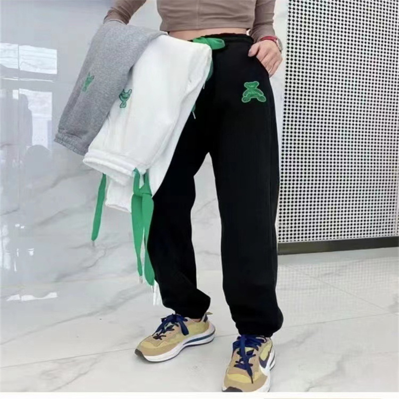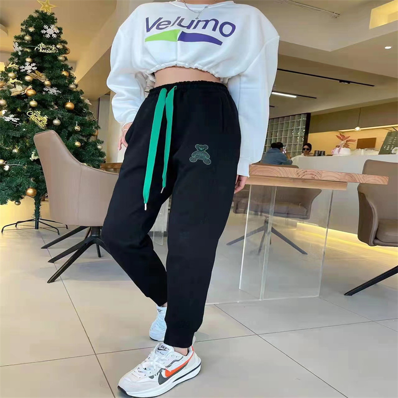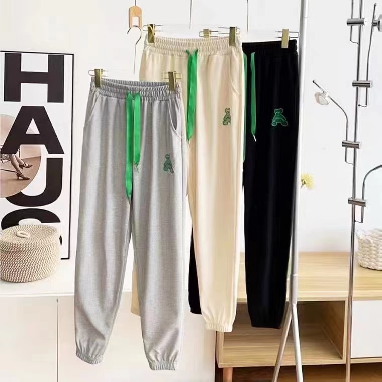 2024夏季新款时尚百搭刺绣小熊松紧腰休闲裤宽松显瘦卫裤好运动裤 投诉
