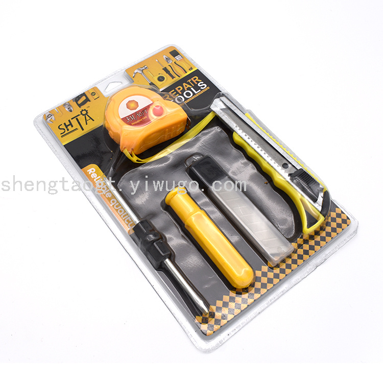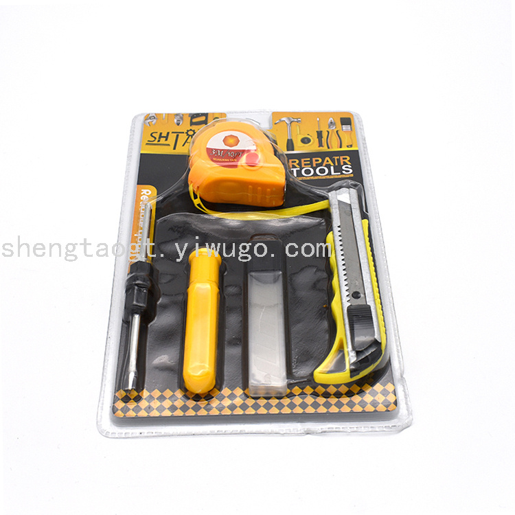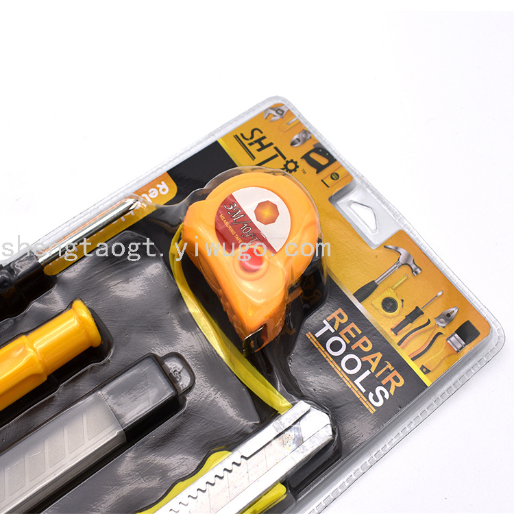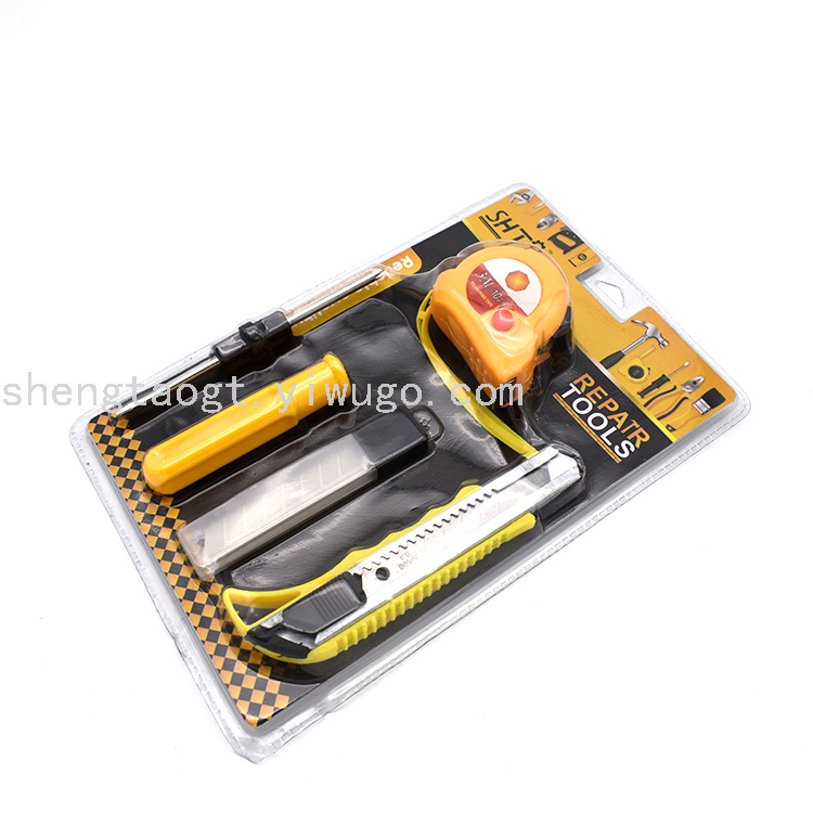 ST-5018双泡五金组套工具批发黄色3米卷尺螺丝刀美工刀刀片