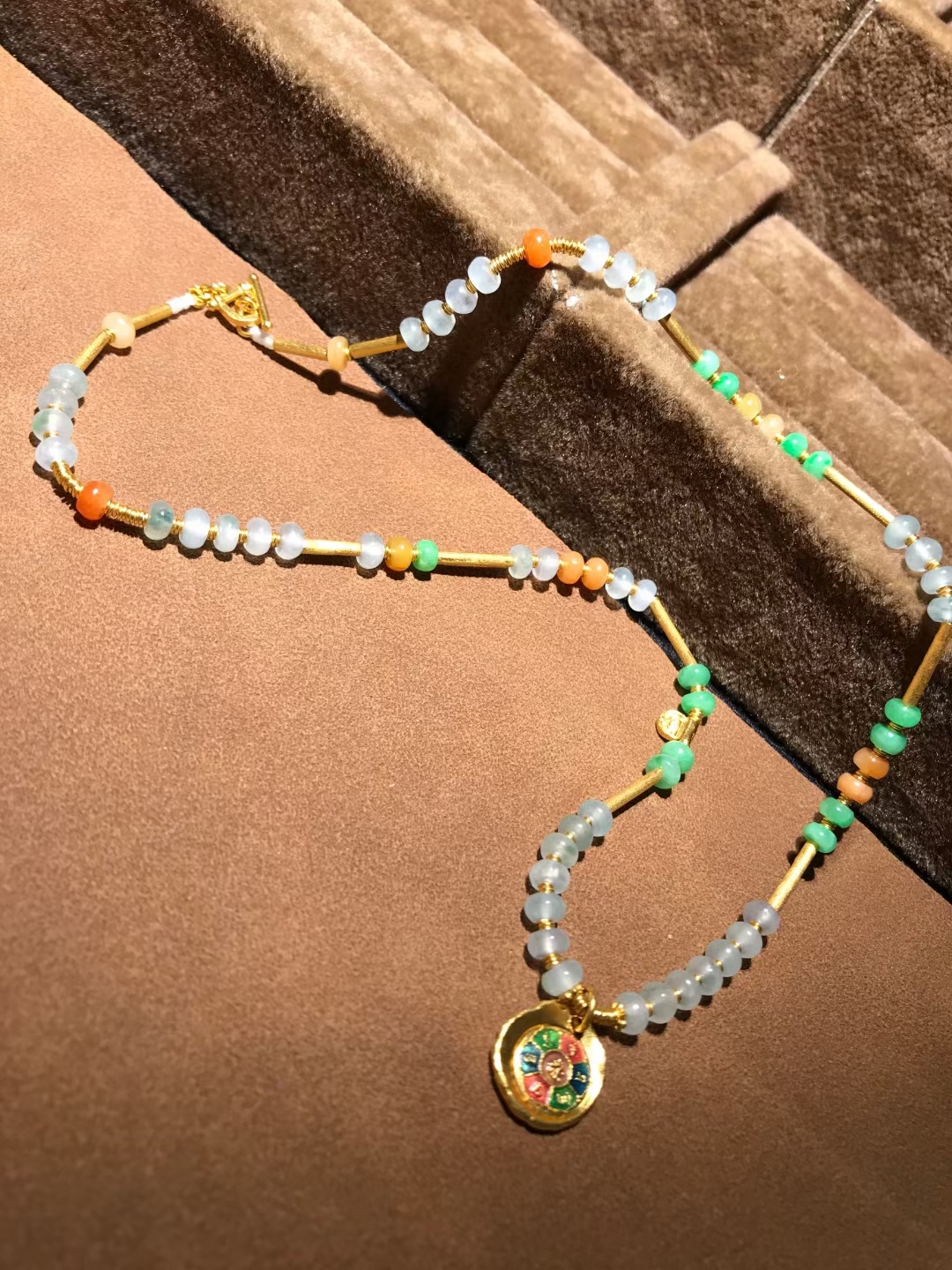 天然翡翠唐三彩+24k足金配件锁骨链 有种有色 投诉