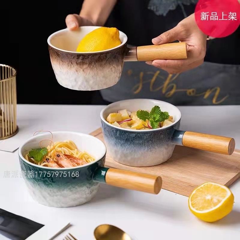 现货手柄盘手柄碗景德镇彩釉陶瓷烤盘看牛排盘沙拉盘出口陶瓷现货