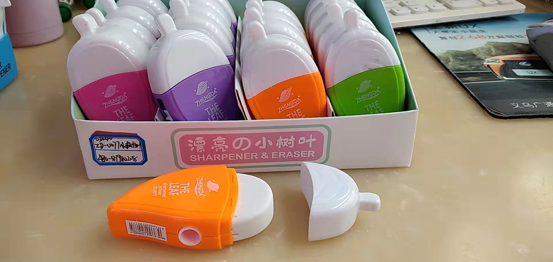 ZD-0077树叶橡皮+卷笔刀24PC/彩盒,适用于中小学生,厂家直销,欢迎来电洽谈咨询,电话:15397550729微信:15397550729