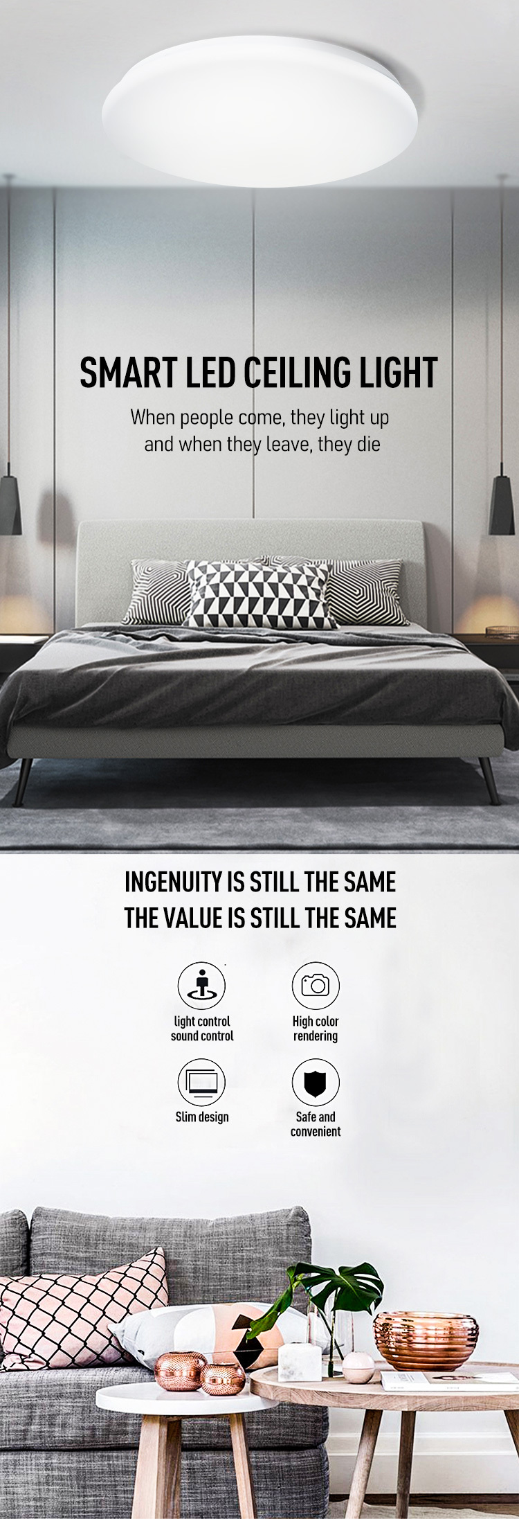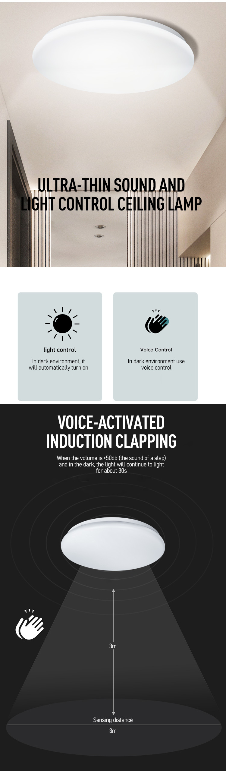 AKKOSTAR 24W LED声光控吸顶灯-6500K 楼道感应灯