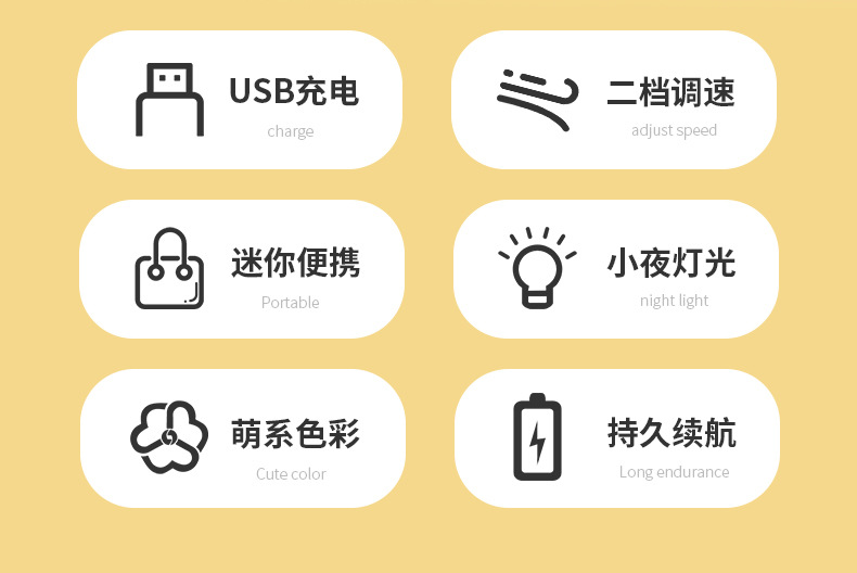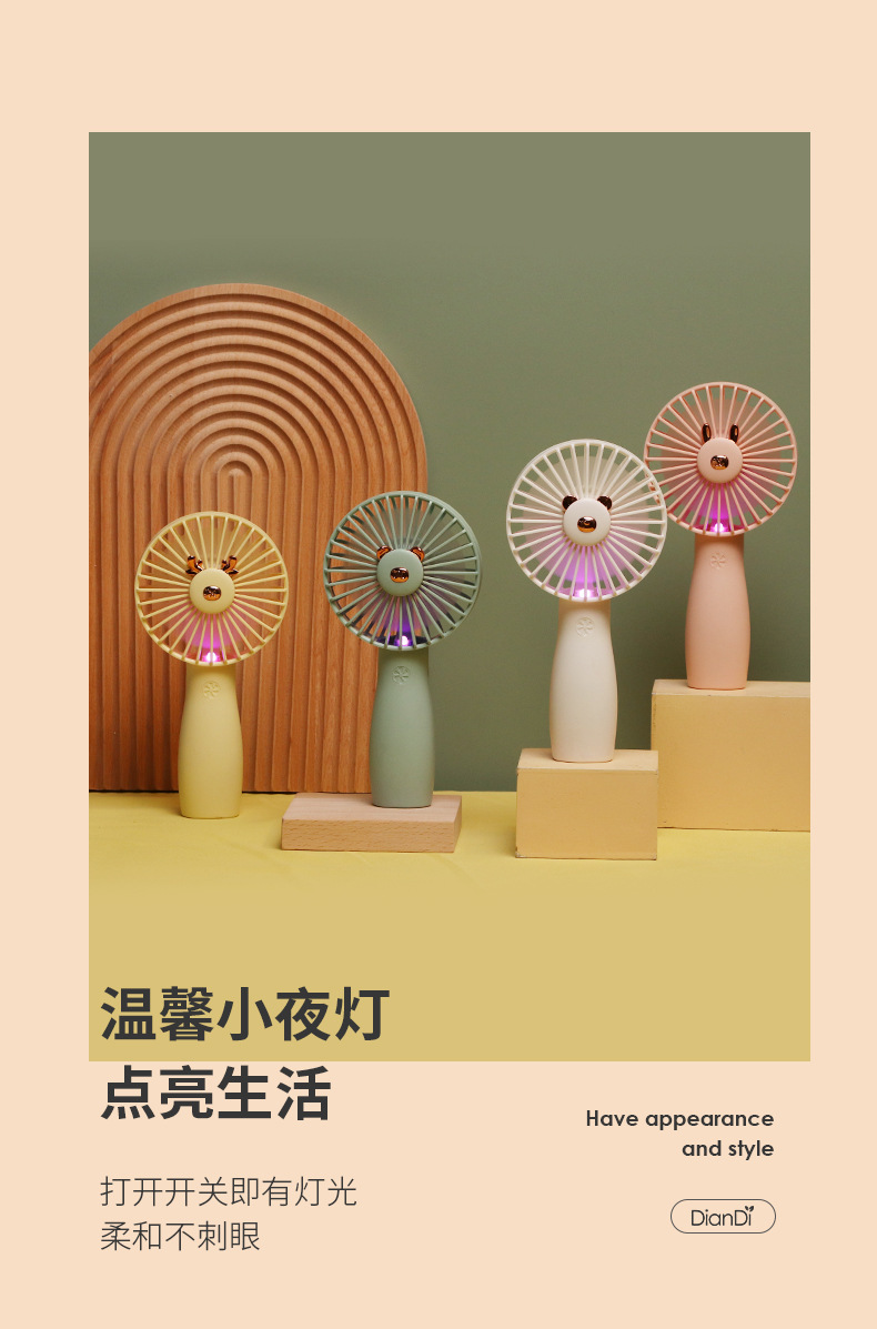 【产品名称】花朵灯光两档充电风扇