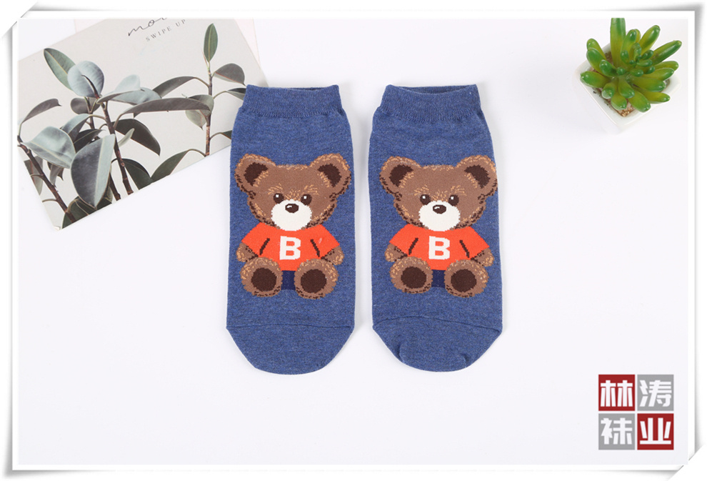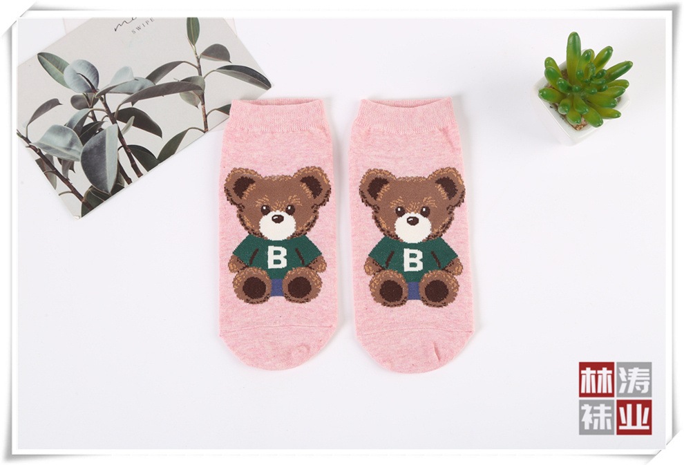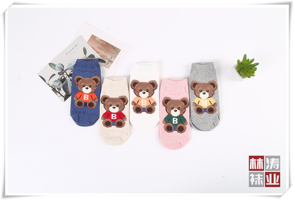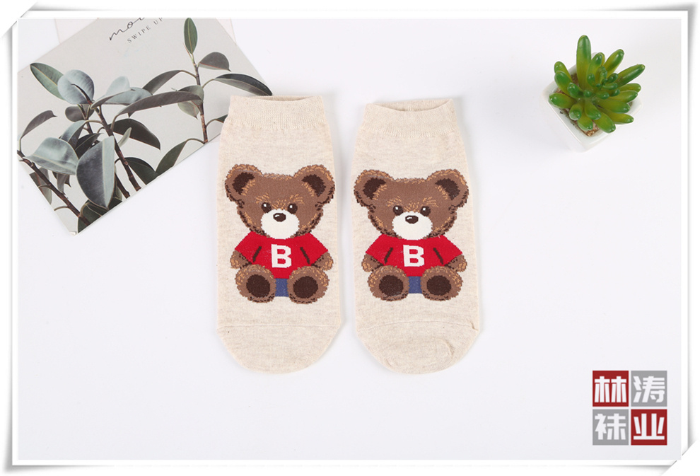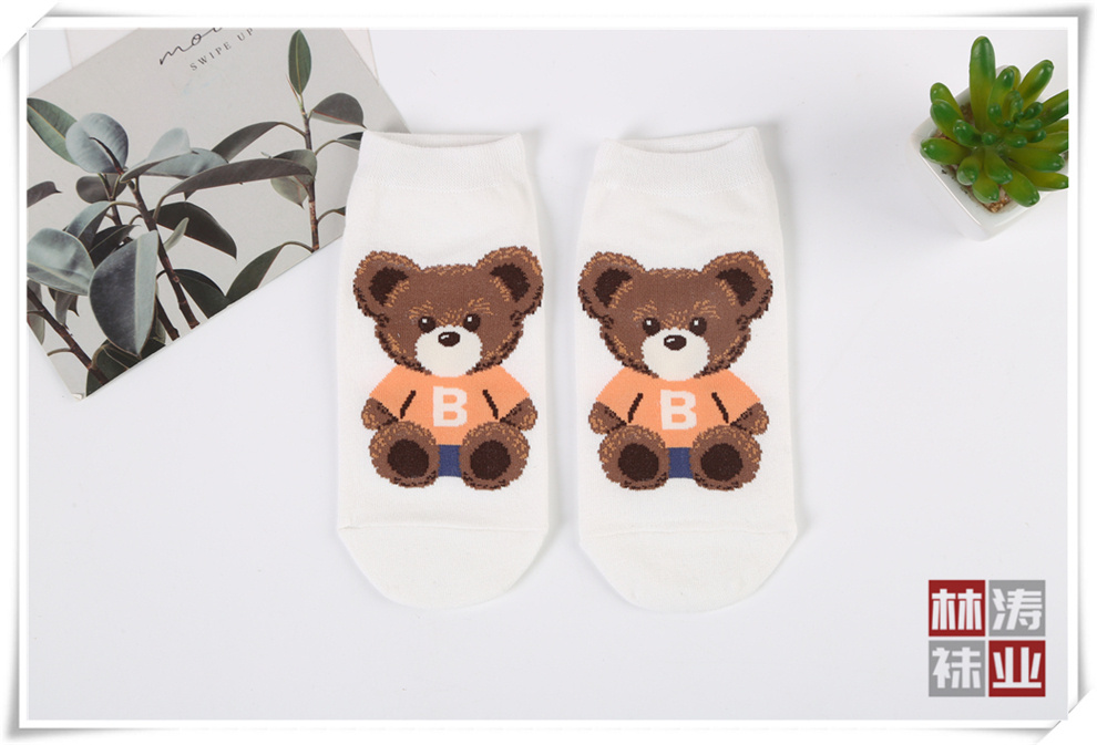 产品名称:时尚短腰女袜 韩版卡通小熊图案直筒棉袜 少女学院风春夏新款短袜