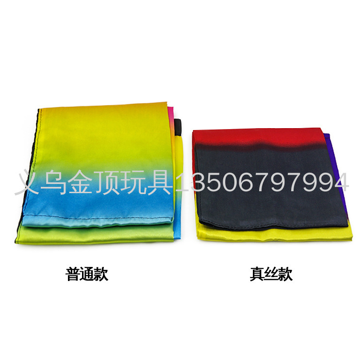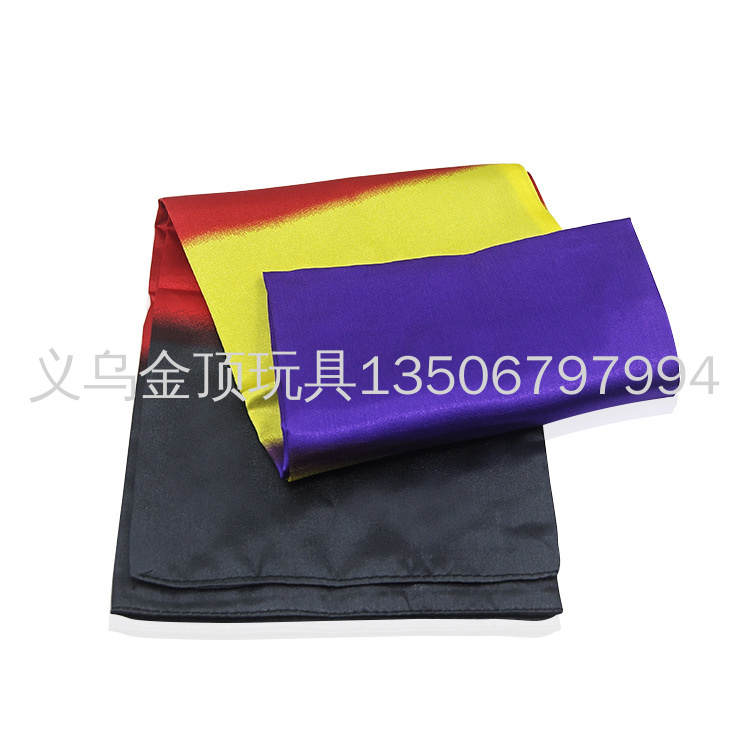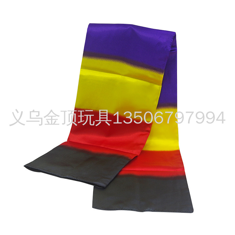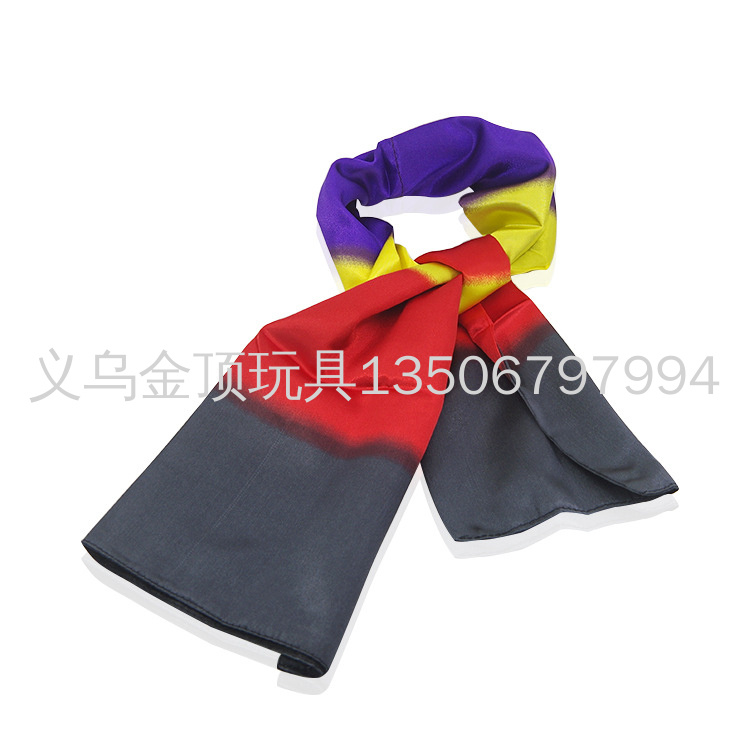 黑丝巾变彩虹丝巾(围巾变色):舞台丝巾魔术。