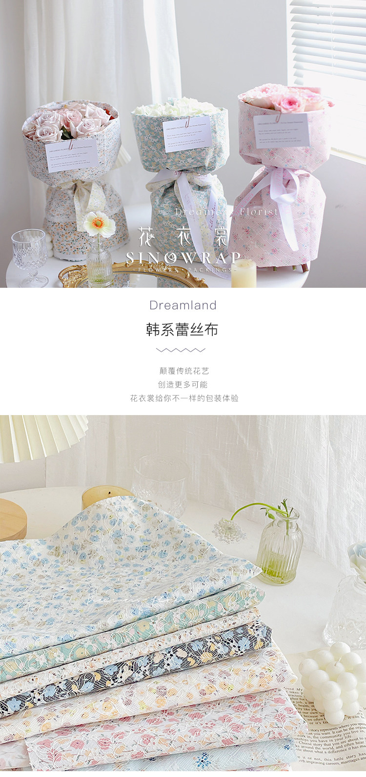 花衣裳 韩式蕾丝布艺包装鲜花花束礼品包装花艺资材花店用品