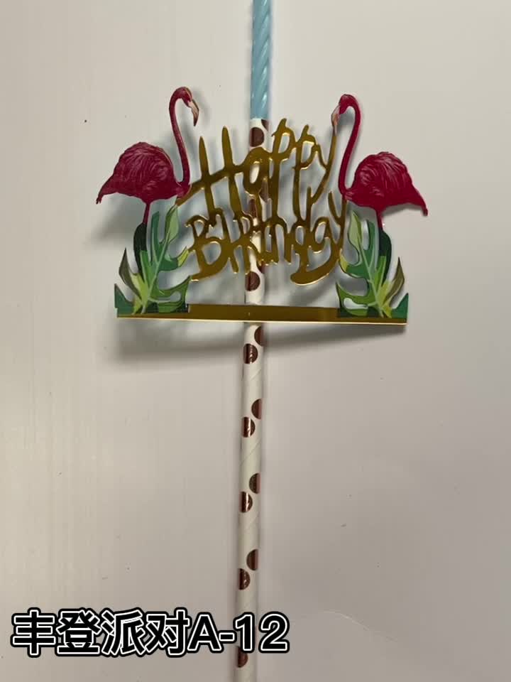 可爱简化双火烈鸟网红ins风生日快乐蛋糕叉