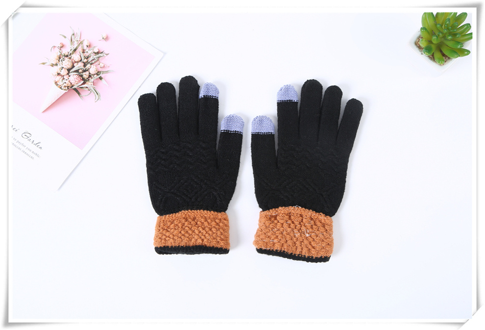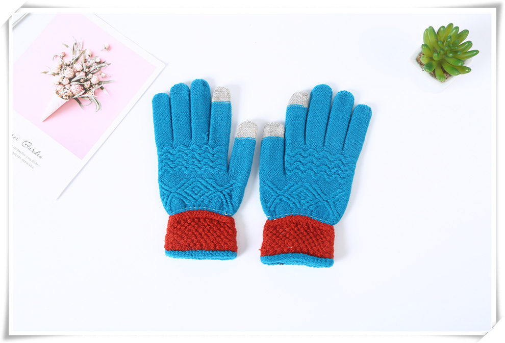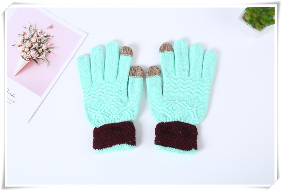 寒冷冬日针织保暖手套 韩版仿羊绒质感彩色手套 户外骑行成人手套