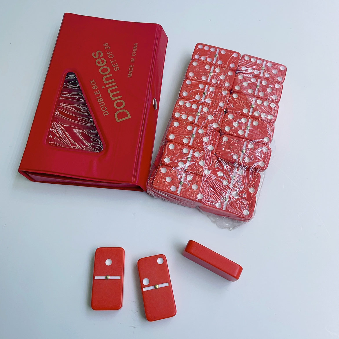 产品名称:多米诺彩色PVC5412红色、黑色28张带钉骨牌