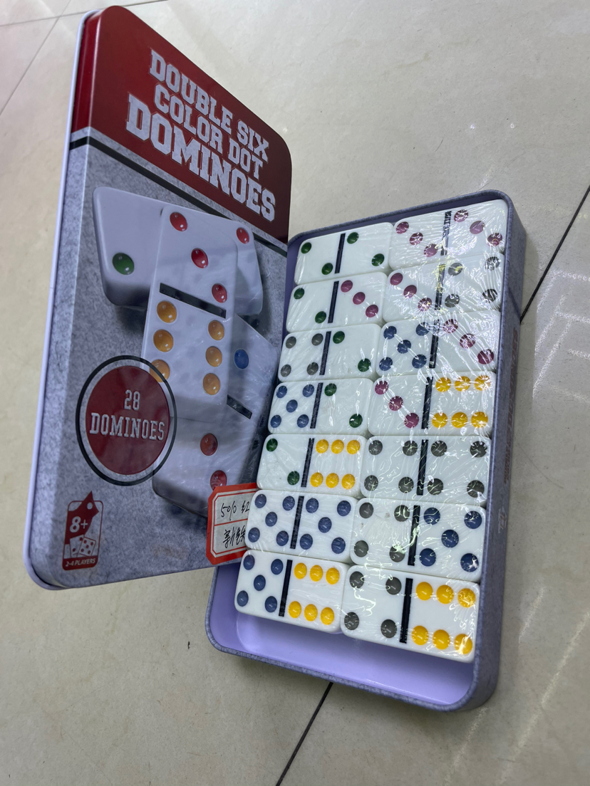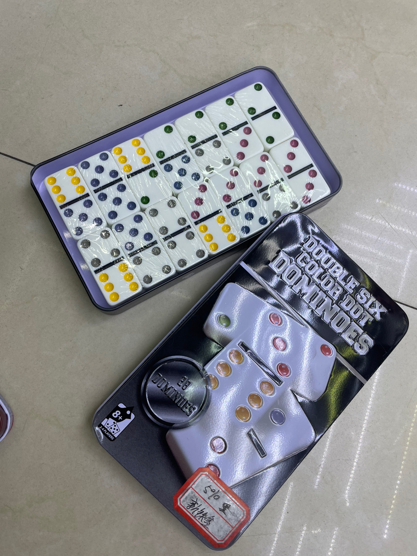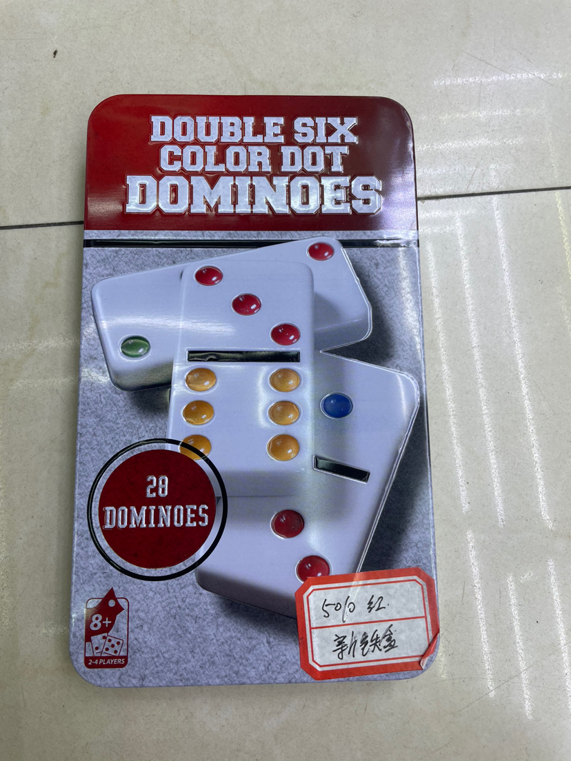 厂家直销  密胺多米诺超薄新铁盒红、黑 28张5010白底彩点骨牌