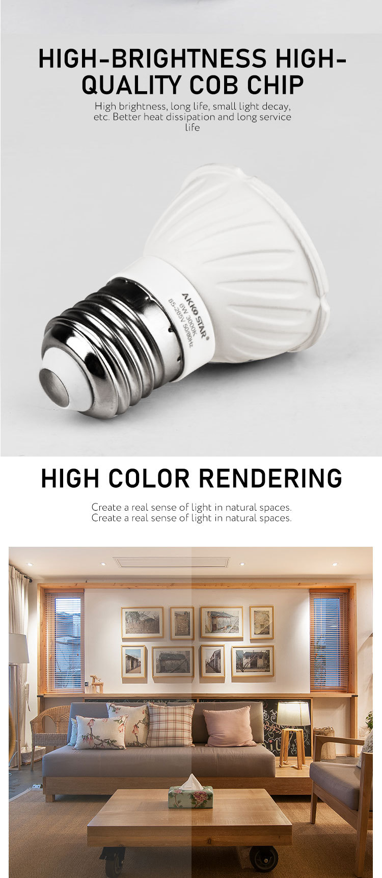 AKKOSTAR 6W-E27  LED高亮灯杯 白光 暖光 中性光