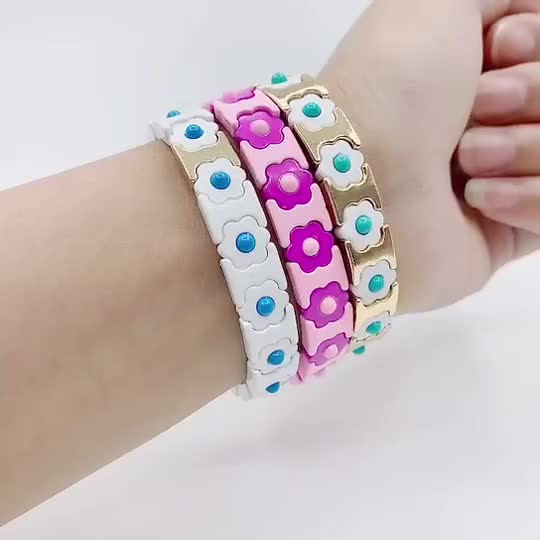 跨境新款欧美搪瓷手链波西米亚彩色花朵DIY 烤漆弹力手镯现货批发
