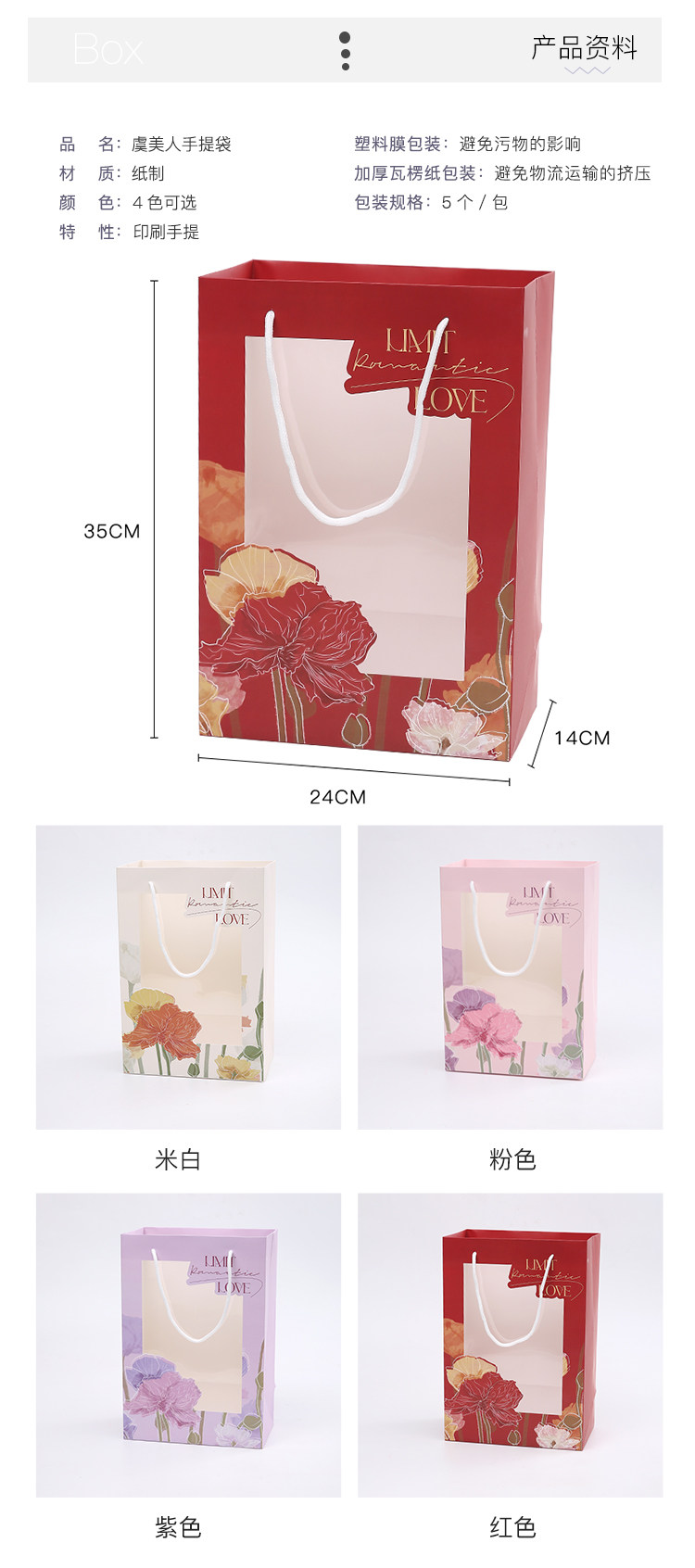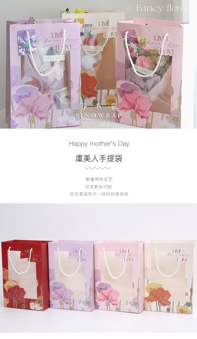 花衣裳 母亲节橱窗手提袋礼袋鲜花花束手提礼品袋包装袋