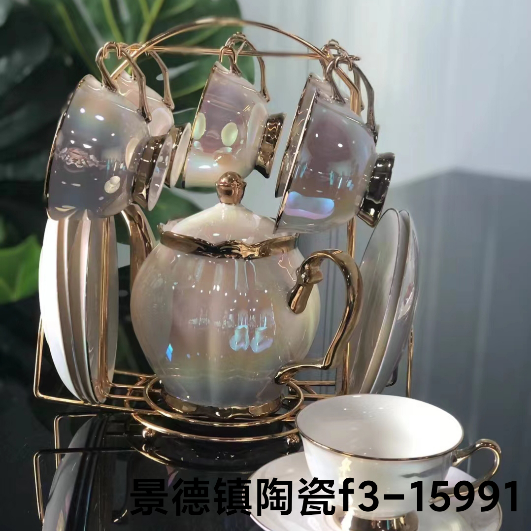 咖啡杯陶瓷壶陶瓷碟珍珠釉水具陶瓷杯电镀金边骨瓷杯陶瓷杯居家瓷更新时间:2022-06-13 14:58