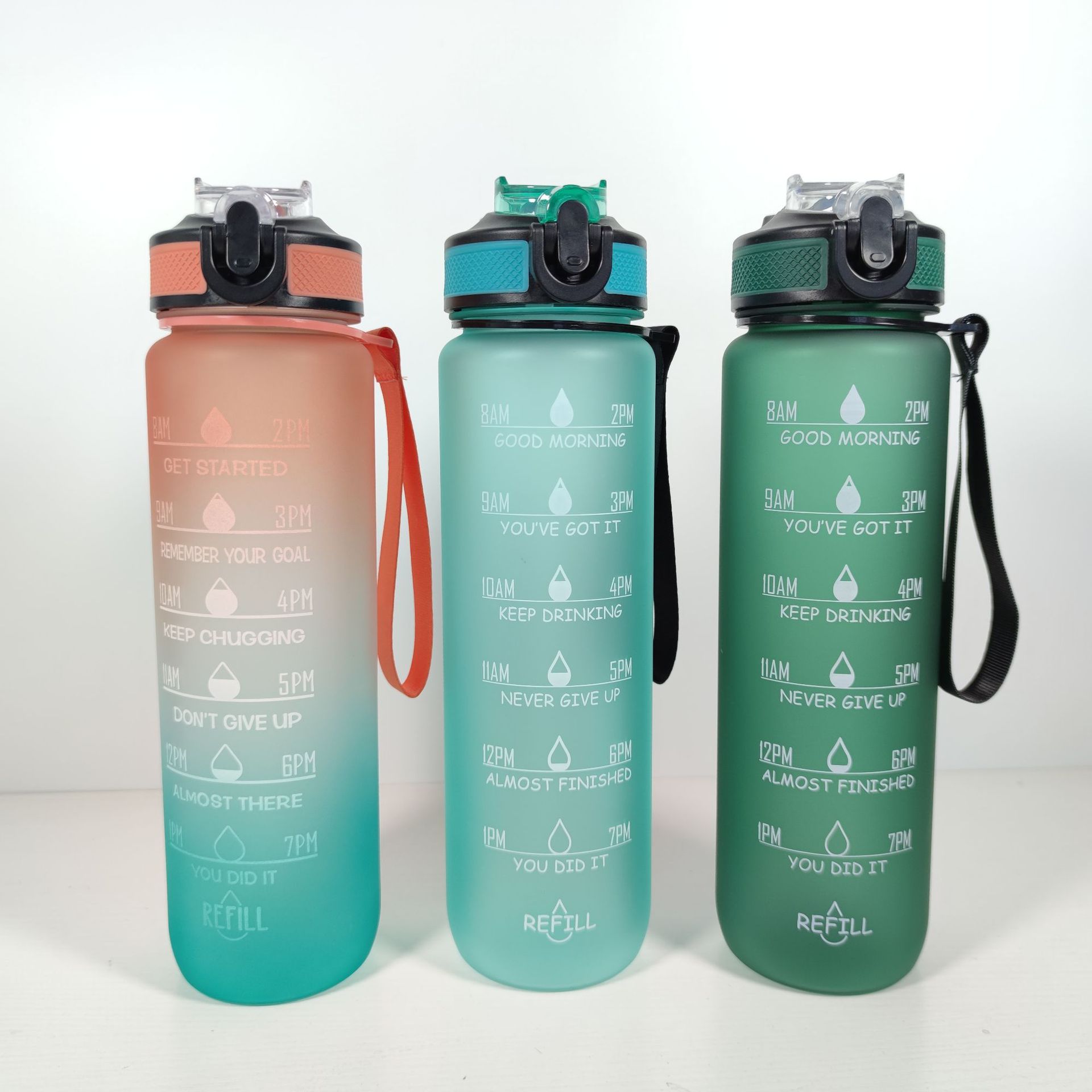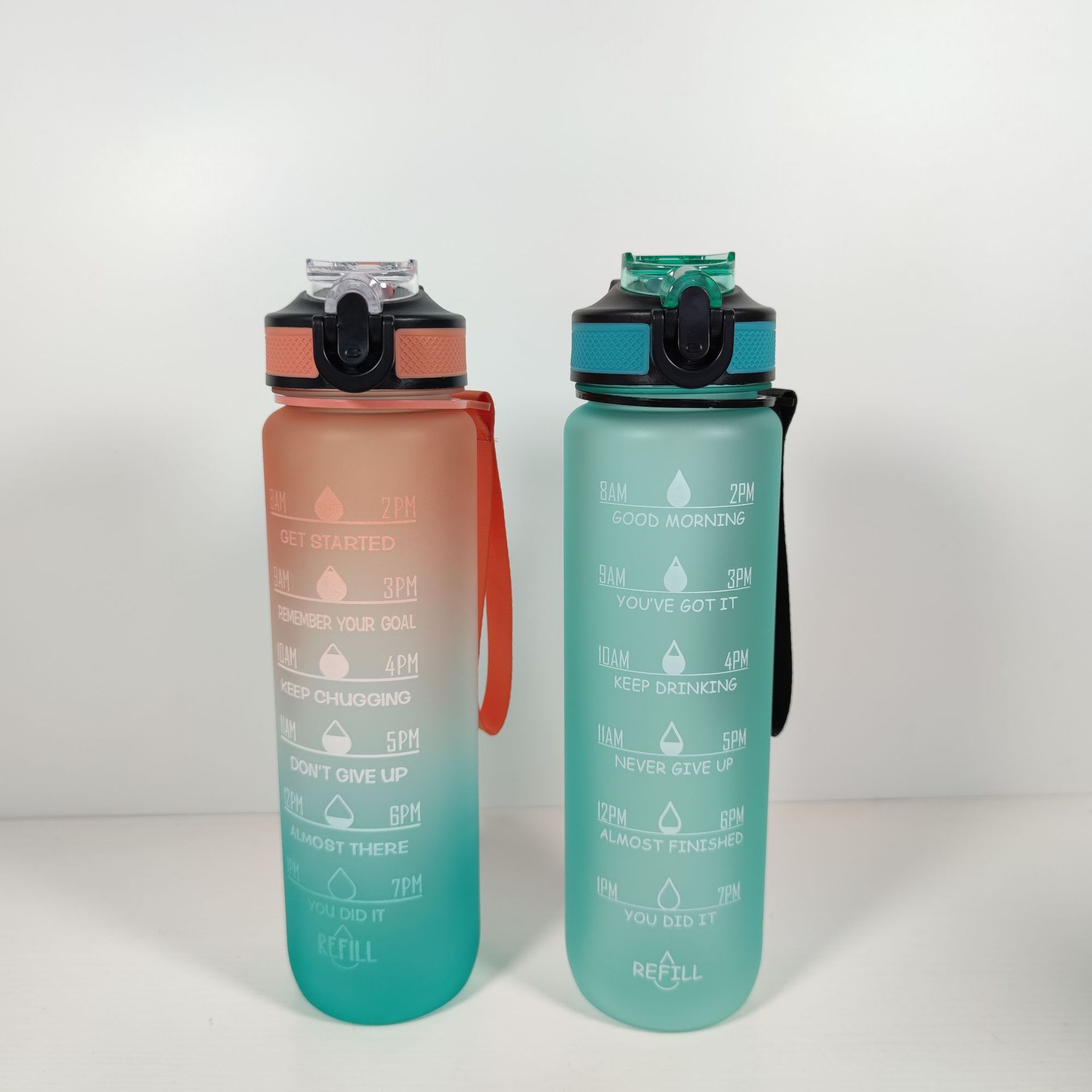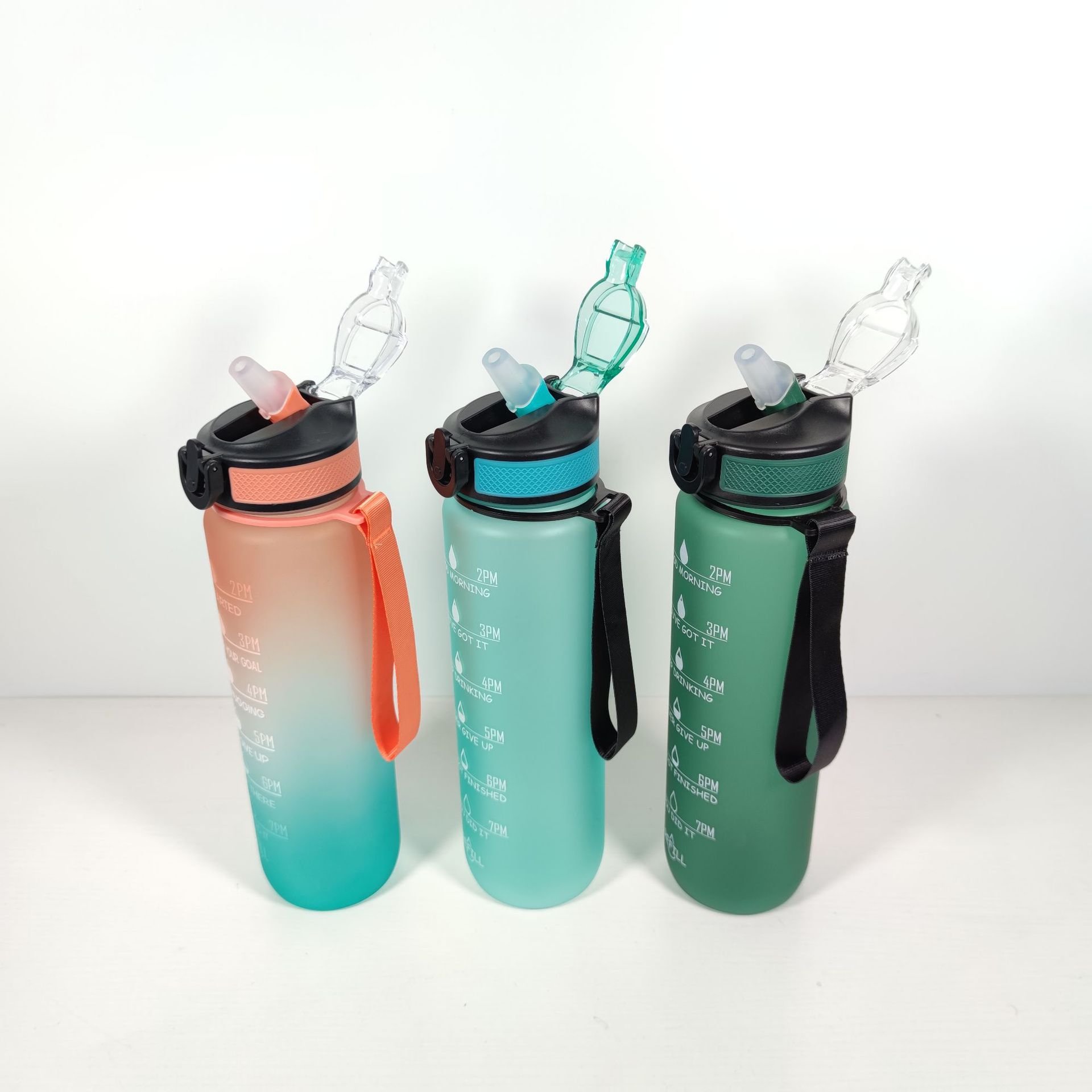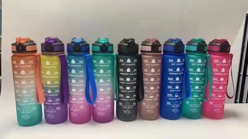 创意渐变色1000ML太空杯塑料磨砂便携户外随行运动弹跳水壶