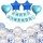 18寸浅蓝桃心2个+18寸深蓝五角星2个+小号浅蓝色生日横幅一套+12寸珠光浅蓝气球12个+12寸白色乳胶气球10个+12寸蓝色亮片气球10个+蓝色丝带2卷+吸管1根