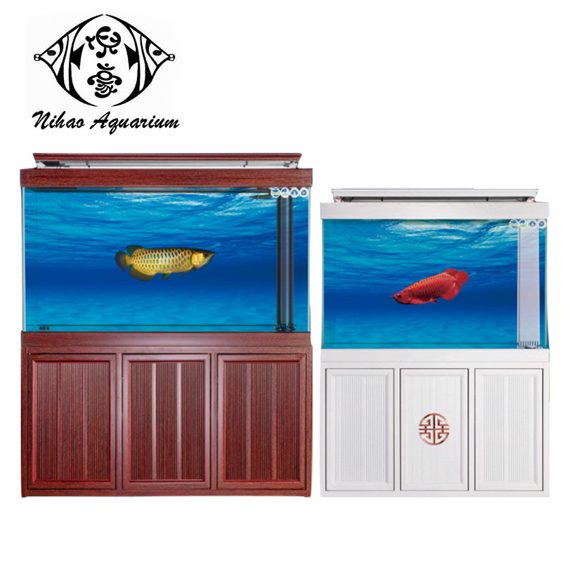 大型鱼缸造景水族箱水草布景透明全套带柜子观赏展示