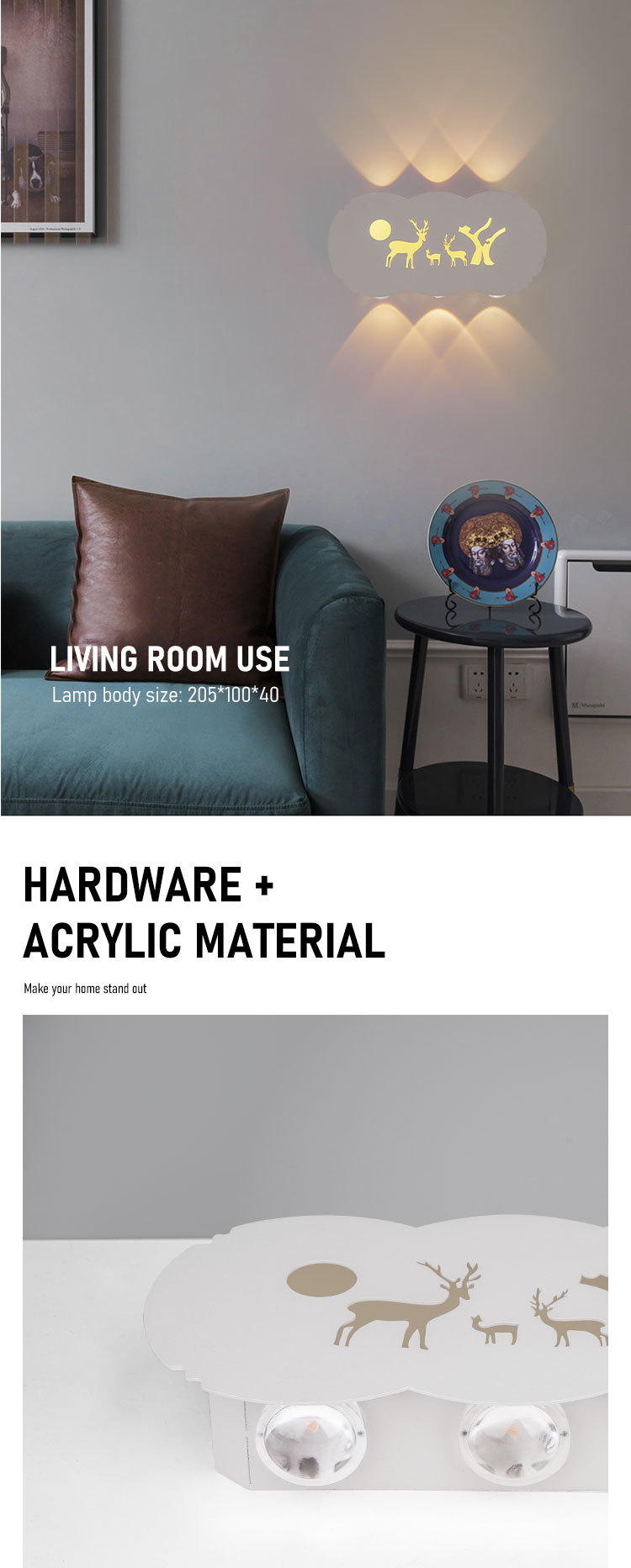 AKKOSTAR-10W 麋鹿图案 暖光3000K LED壁灯 走廊装饰灯 投诉