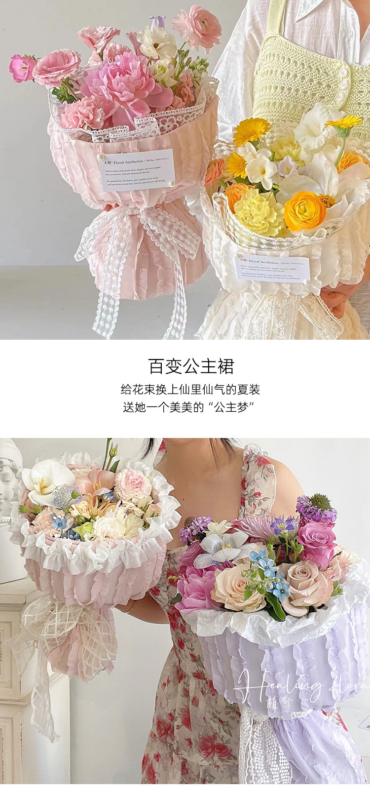 花衣裳 新品布艺公主裙小香风包花布圆形花束鲜花包装包花纸材料 投诉