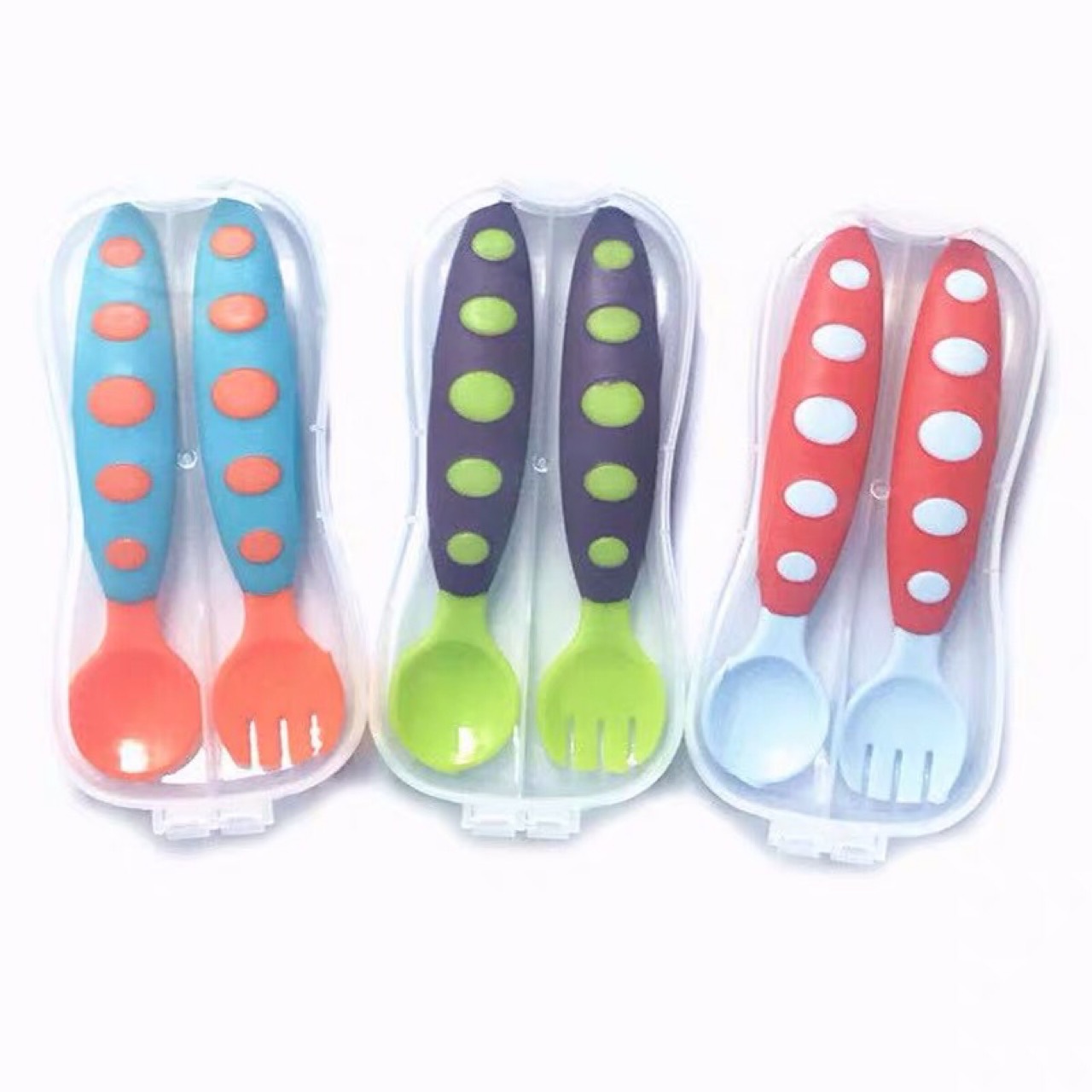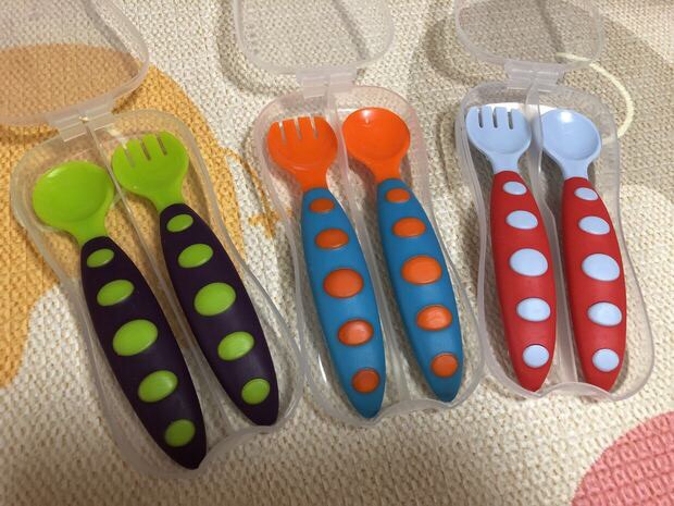 厂家直销 儿童包胶塑料勺 盒装软胶叉勺 斑纹叉勺 宝宝训练叉子 投诉