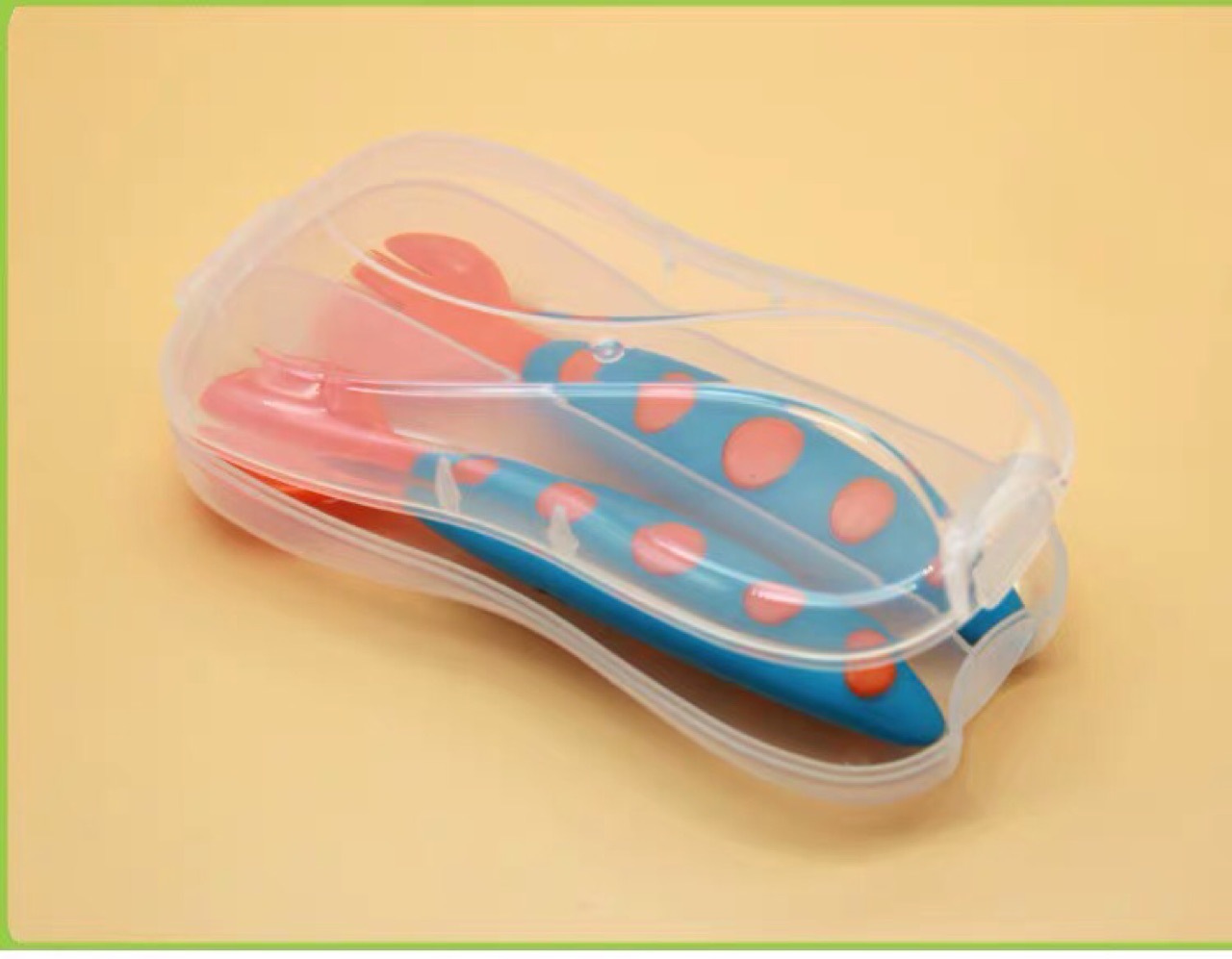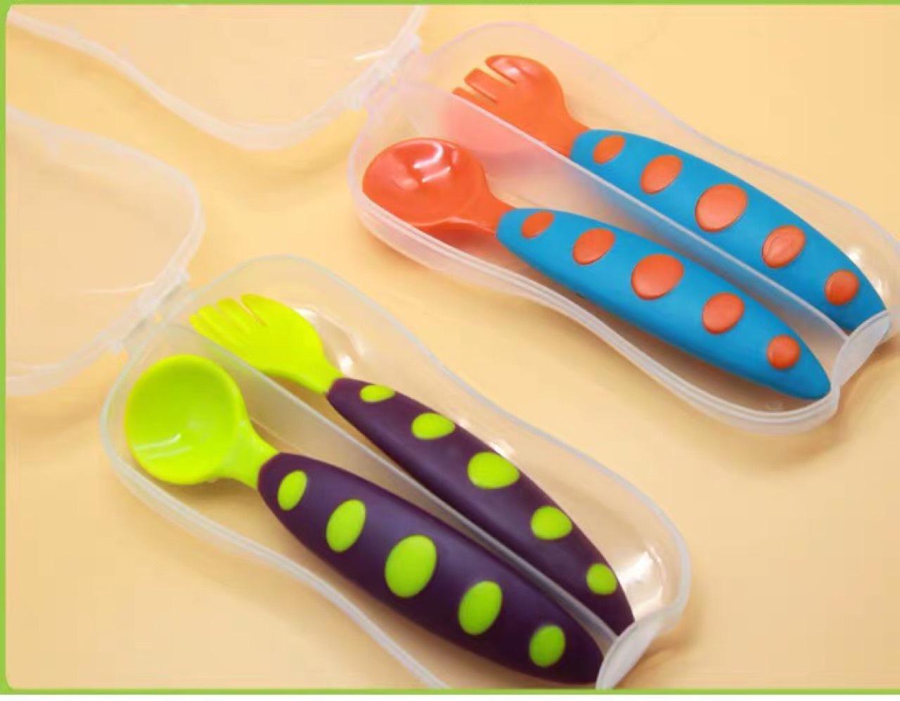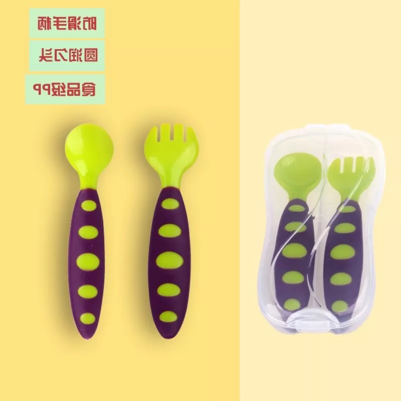 厂家直销 儿童包胶塑料勺 盒装软胶叉勺 斑纹叉勺 宝宝训练叉子