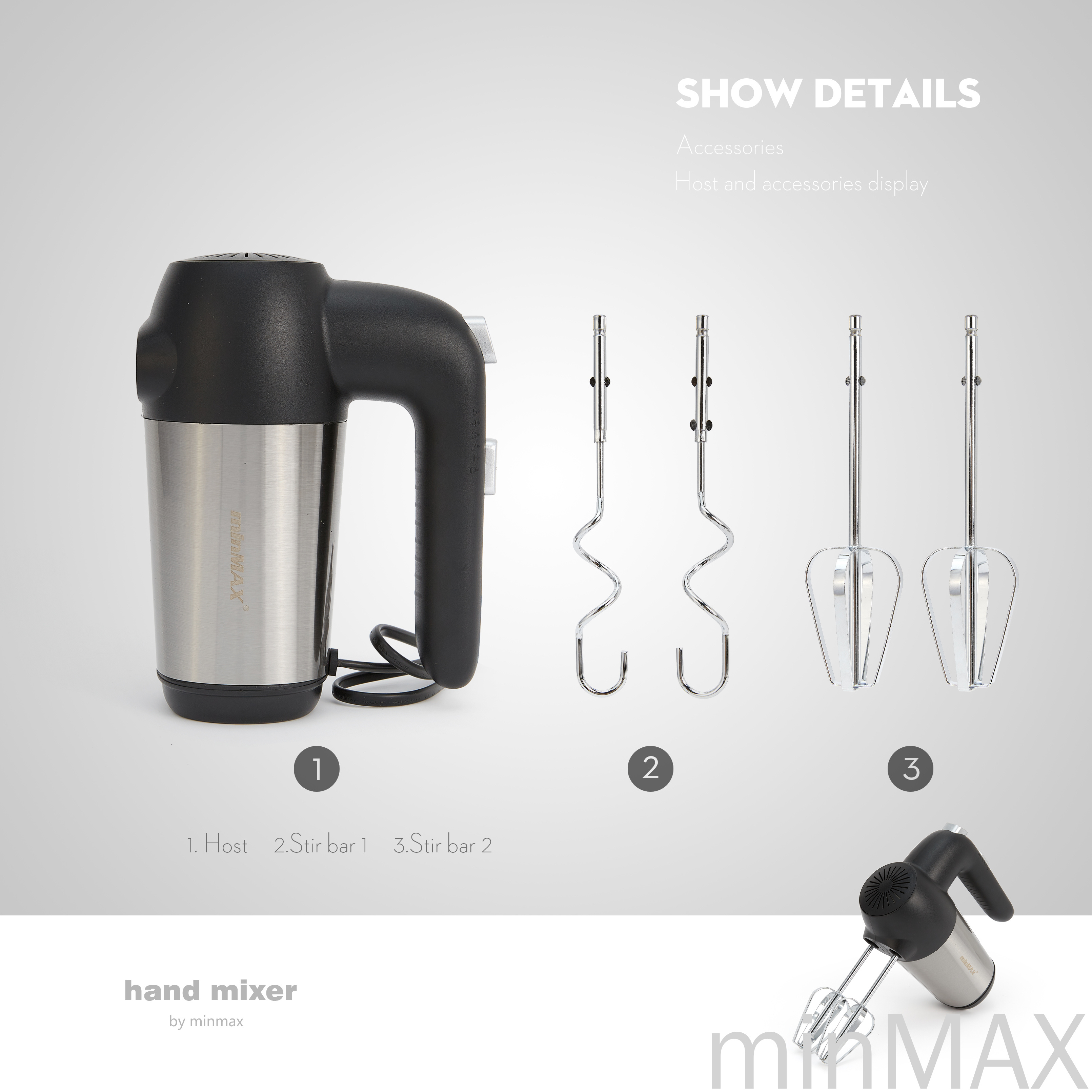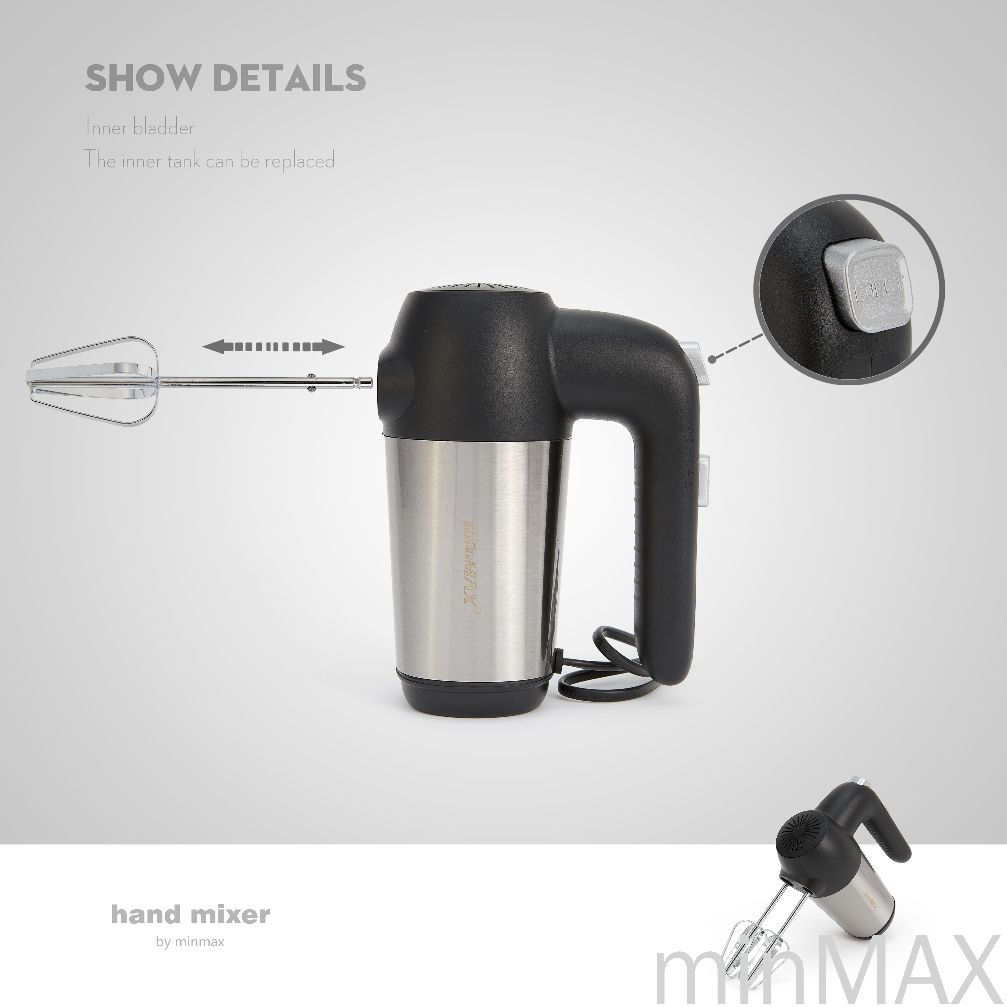 产品名称:打蛋机 搅拌器( 圆插) 货号:9615 体积:0.055/件 尺寸:56.1*33.2*29.5cm/件 毛重:18.45 品牌:minMAX 包装:独立包装 商铺主营:电热水壶、碎肉机、电熨斗、搅拌机、手持搅拌 机、打蛋机 、三明治机 、果汁机、光波炉、吹风机、吸尘 器、烤肉机、电饭煲、干果机等... 本店款式齐全种类繁多 如有需要可随时联系客服 本店随时恭候您的光临哟~