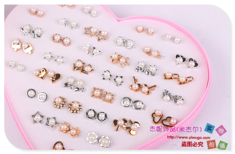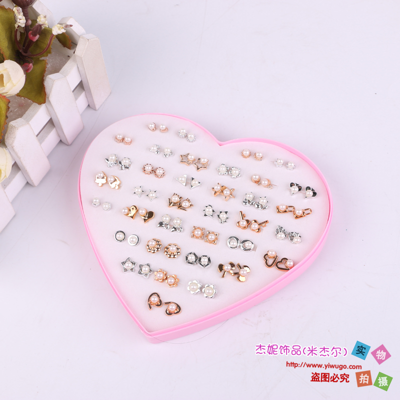 宝贝名称:爱心形盒装气质极简复古质感珍珠耳钉耳环耳饰女 造型款式多样
