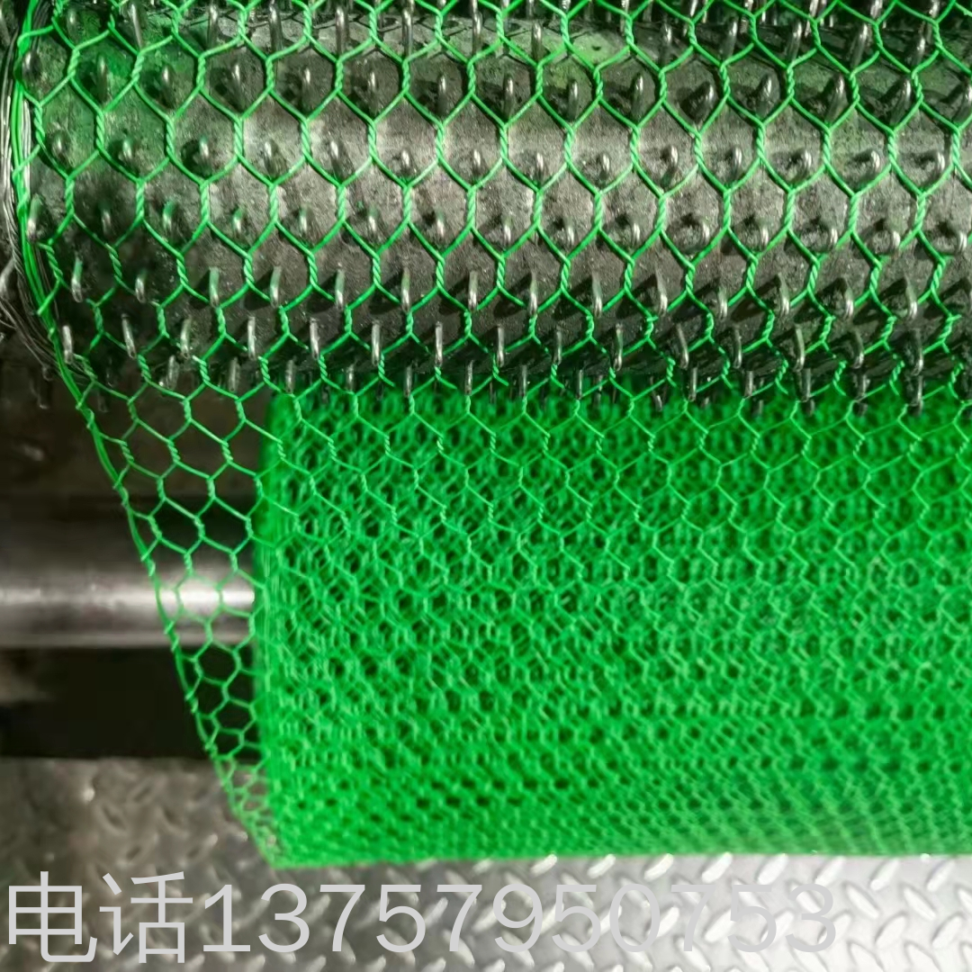 (8)镀锌丝包塑六角网是在镀锌铁丝的表面包一层PVC保护层,再编织成各种规格的六角网。这层PVC保护层将会大大增加网的使用寿命,并且通过不同颜色的选择,使其能和周围的自然环境相融合