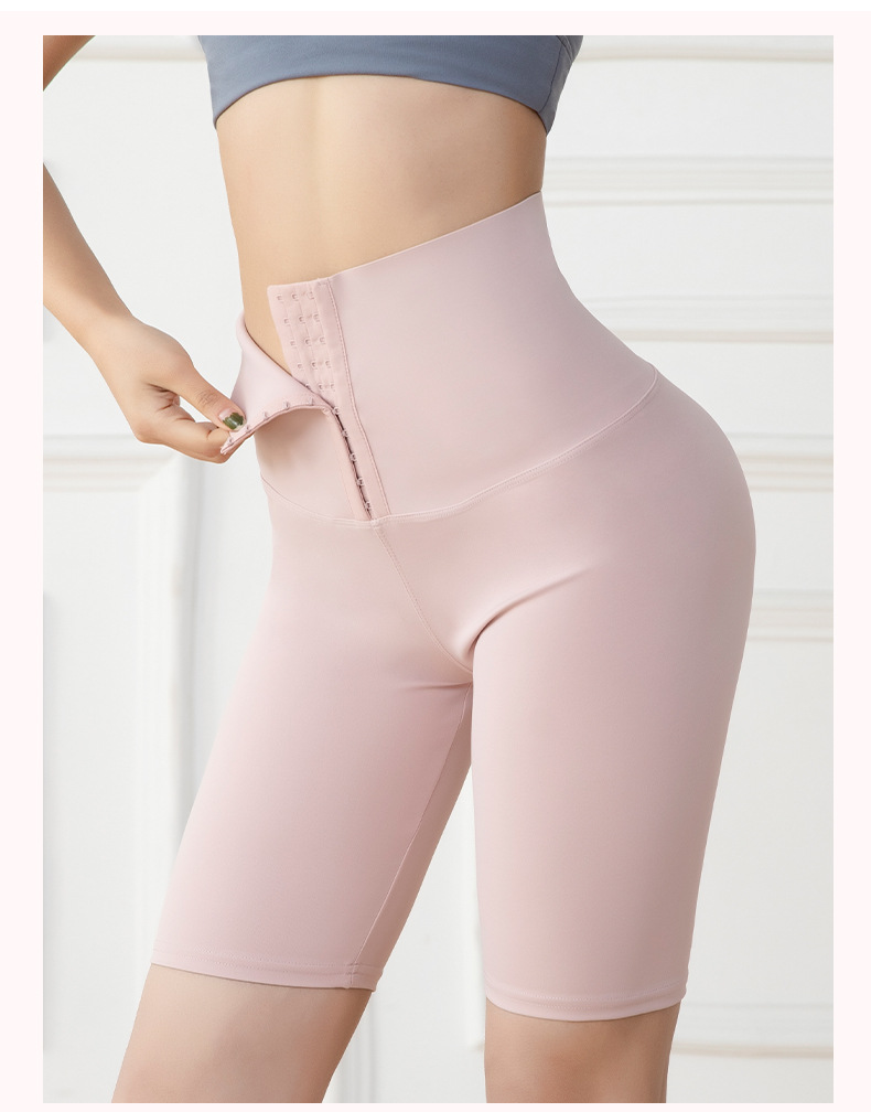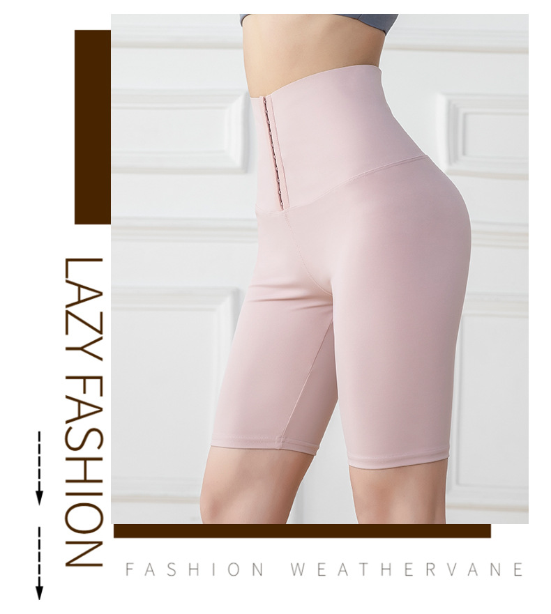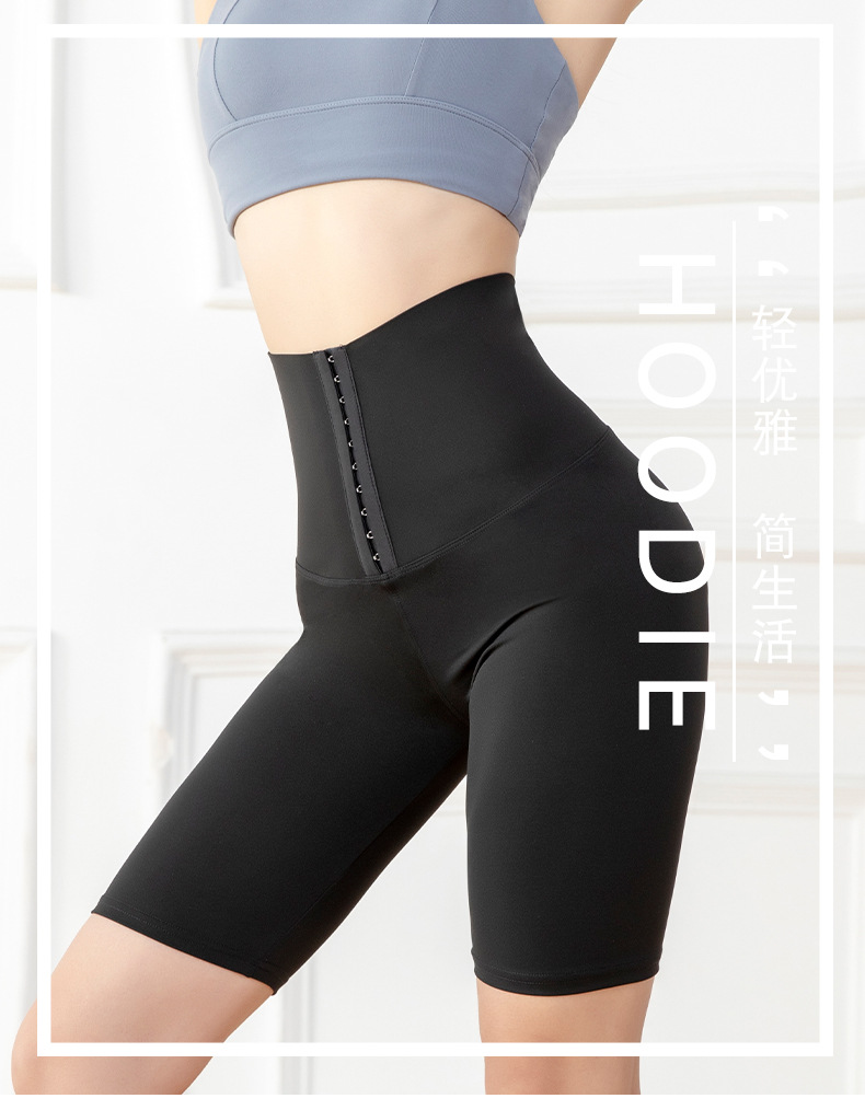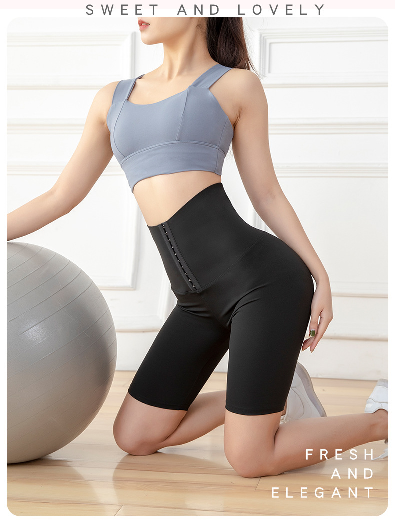 五分高腰紧身运动健身裤女欧美跨境排扣收腹瑜伽短裤
